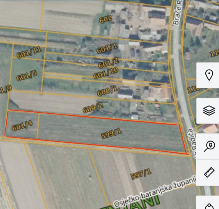 Posjed je ograđen u kompletu te se nalazi uz asvaltiranu cestu sa jedne strane a sa druge strane se proteže poljski put. Zemljište je u građevinskoj zoni tako da je moguća eventualna gradnja objekata, ispred parcele prošao gradski vodovod.