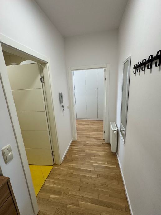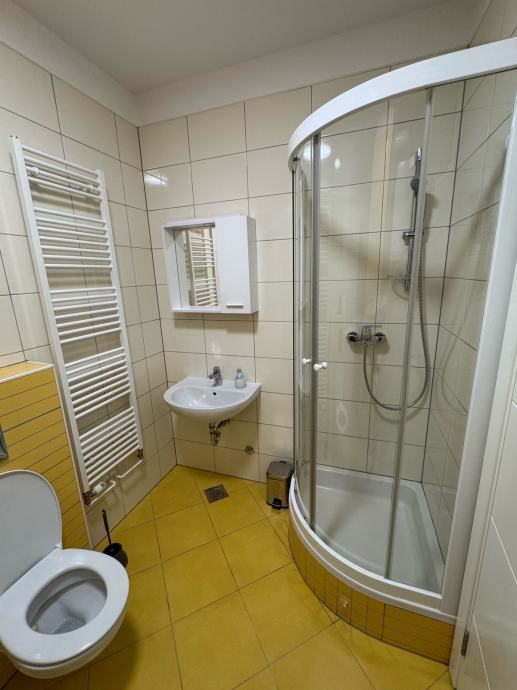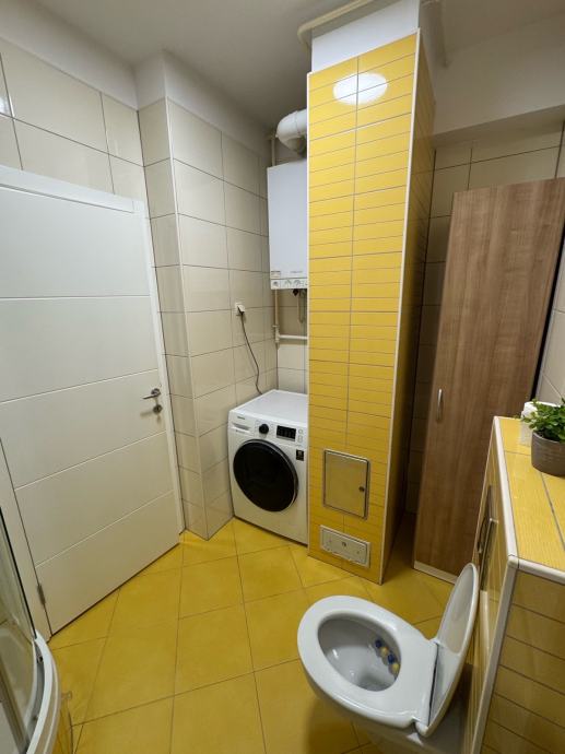 Stan se sastoji od ulaznog prostora, kupaonice s tuš kabinom, perilica+sušilica rublja.