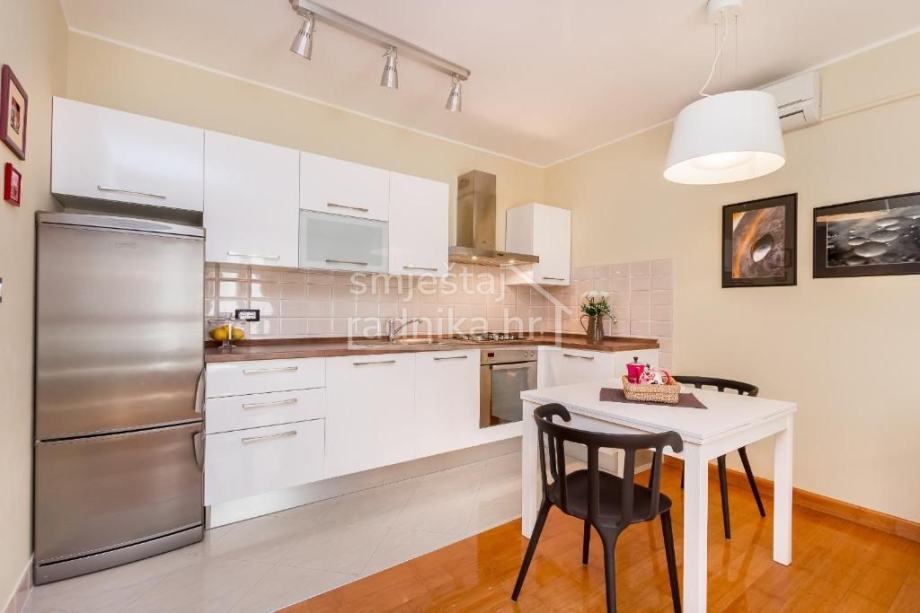 Smještaj se sastoji od ulaznog hodnika koji vodi u novo uređenu kuhinju sa blagovaonicom i dnevnim boravkom u jednoj prostoriji. Kuhinja je u potpunosti opremljena te ima sve potrebne lonce i beštek za kuhanje. Kupaonica je opremljena mašinom za pranje rublja.