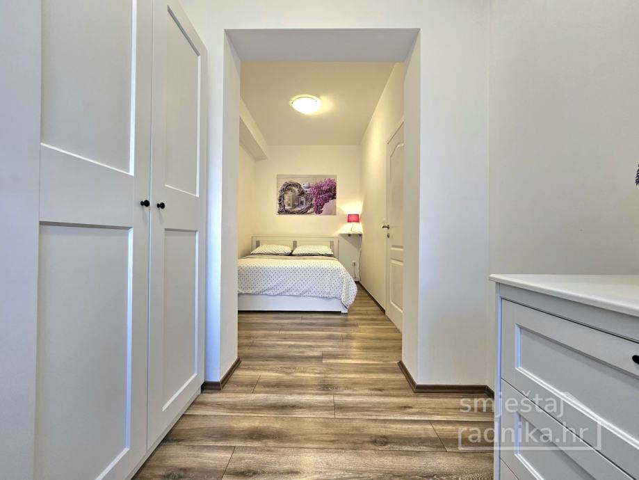 U spavaćoj sobi nalazi se bračni krevet a u dnevnom prostoru se nalazi kauč na razvlačenje.