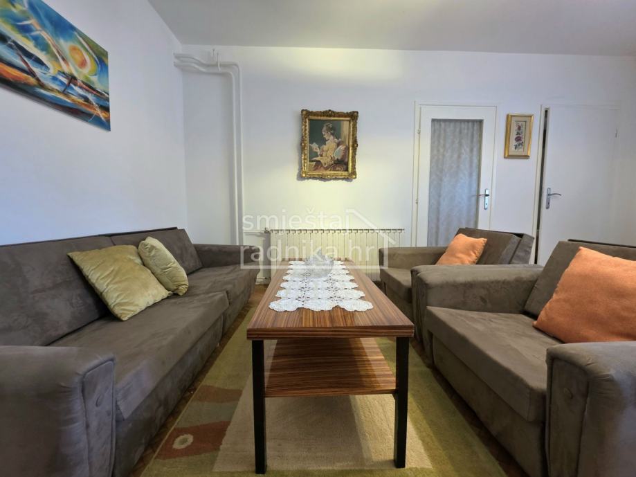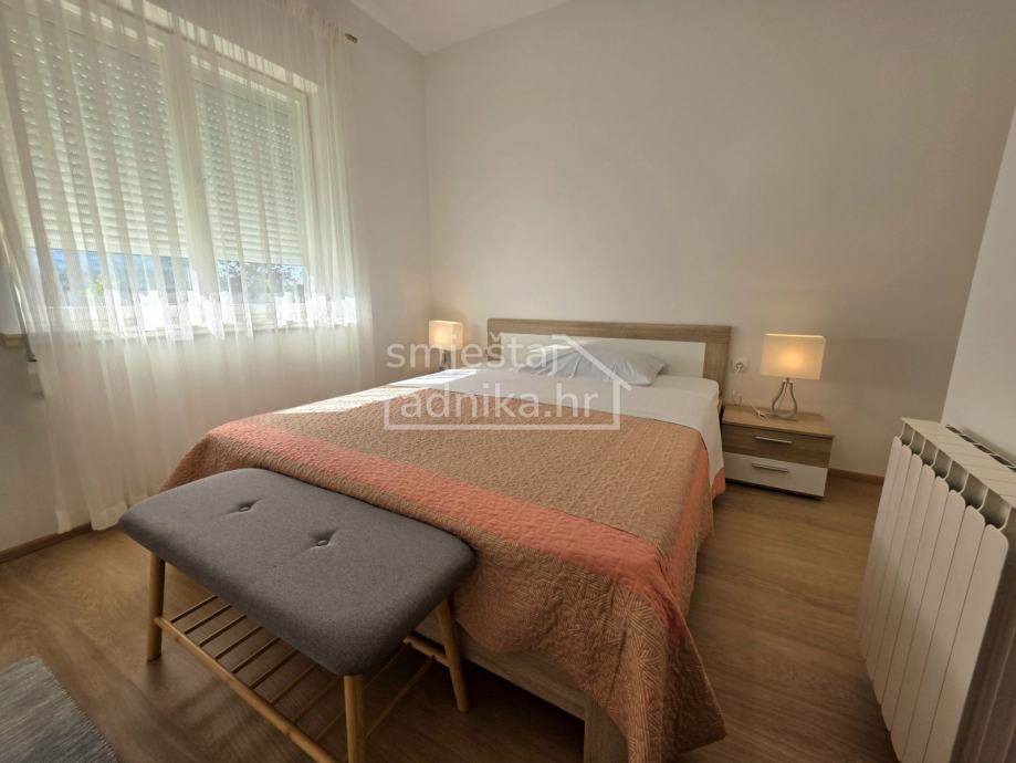 Stan se sastoji od opremljene kuhinje sa blagovaonom i izlazom na terasu, prostranog dnevnog boravka, dvije spavaće sobe sa bračnim krevetom te kupaonice. U kupaonici nema mašine za pranje rublja no u nekretnini se nalazi zajednička veš mašina.