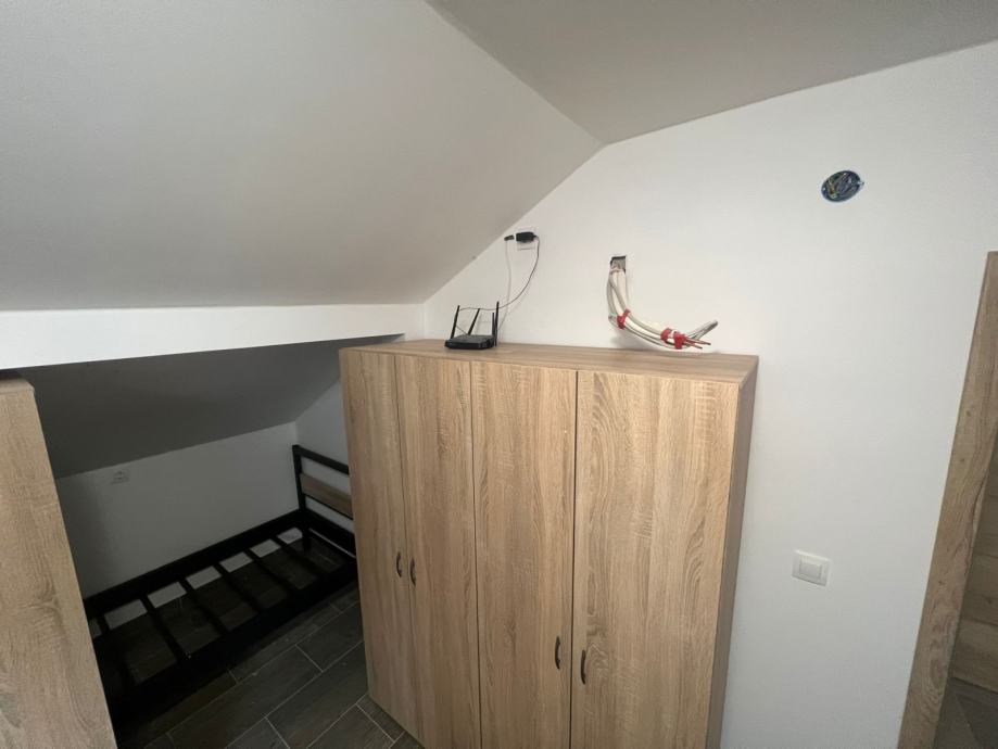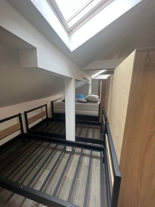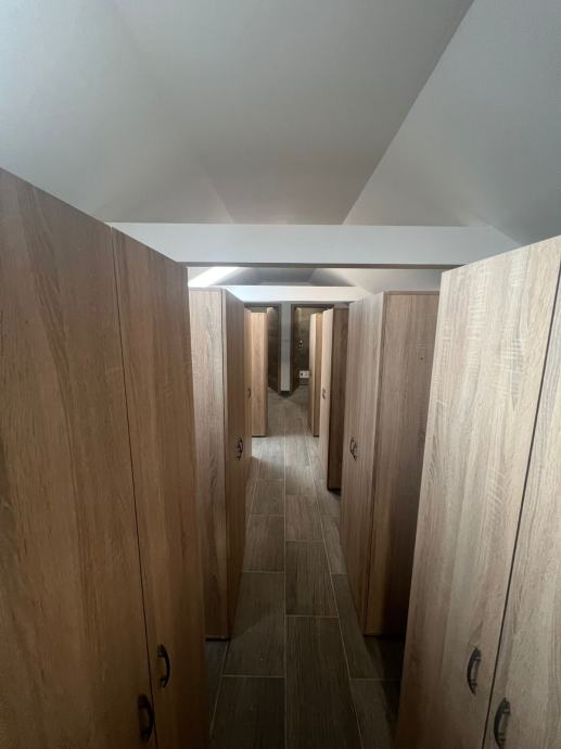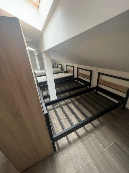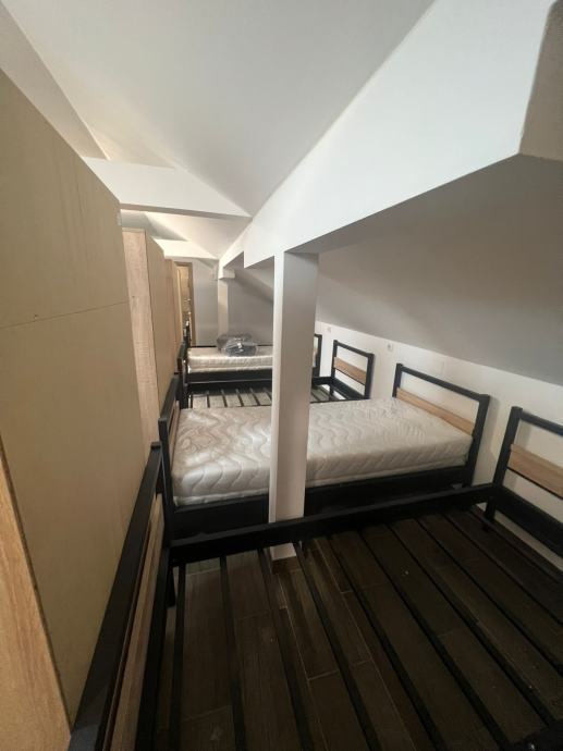 - **Gornja etaža**: Dvije spavaće sobe** svaka sa po 15 kreveta, svaki krevete ima veliki VLASTITI ormar uz krevet, cilindar brava na ormaru