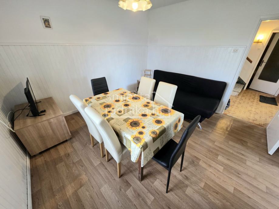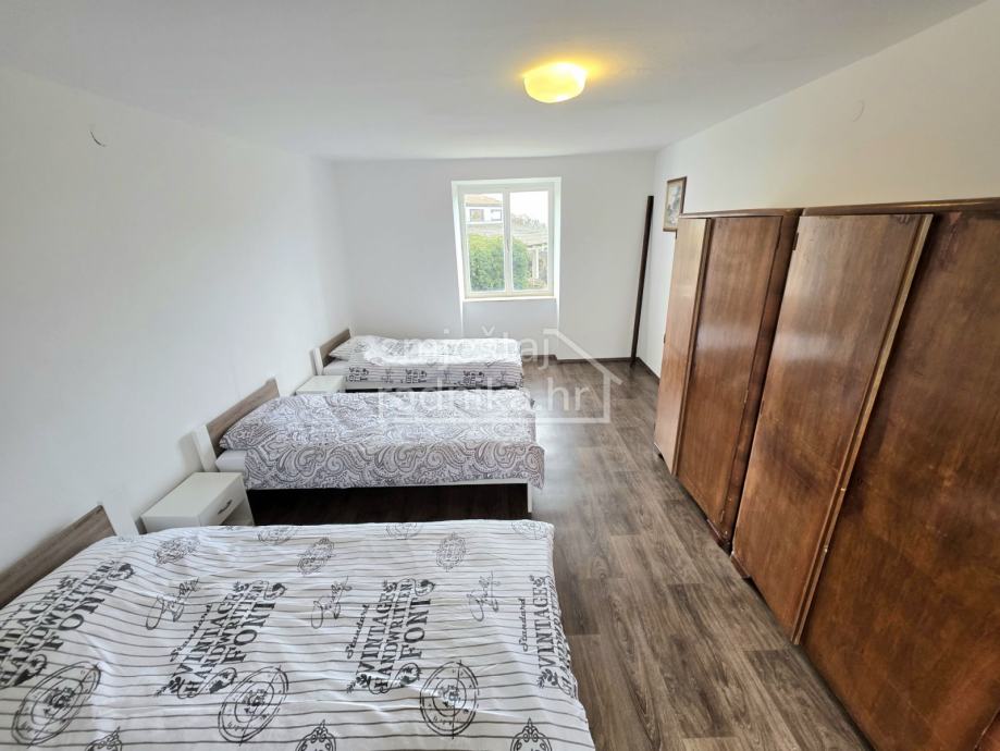 U prizemlju kuće nalazi se opremljena kuhinja sa blagovaonom i dnevnim boravkom u jednom prostoru, spavaća soba sa tri odvojena kreveta i kupaonica opremljena mašinom za pranje rublja.