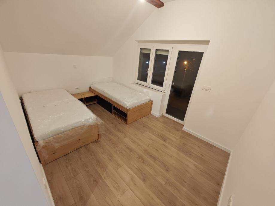 Iznajmljujem smještaj za maksimalno 5 radnika u novom stanu u kući. Stan je veličine 70 kvadrata plus dvije terase oko (14m2). Parkirno mjesto uključeno.