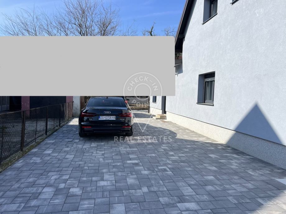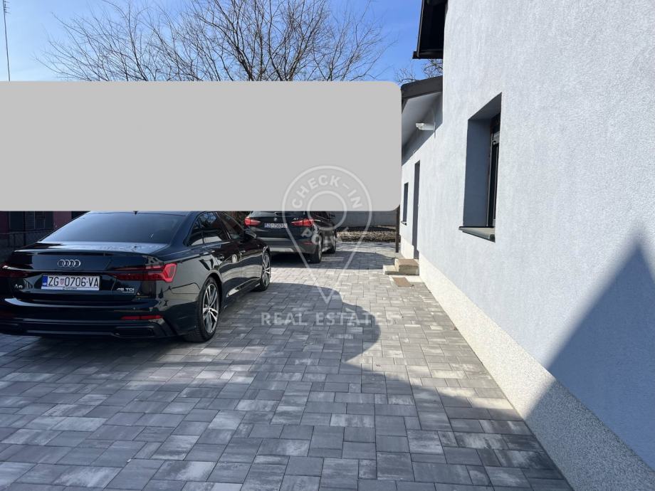 Kuća ima okucnicu površine 200 m2, od čega je polovica popločana za potrebe parkiranja i smještaj do 5 vozila, a ostatak je zelena površina - vrt.