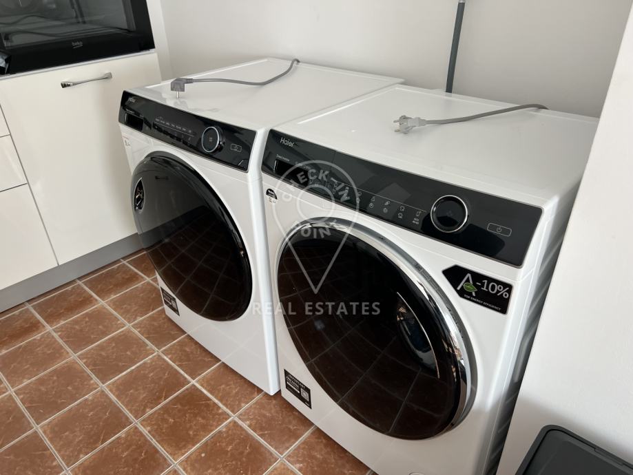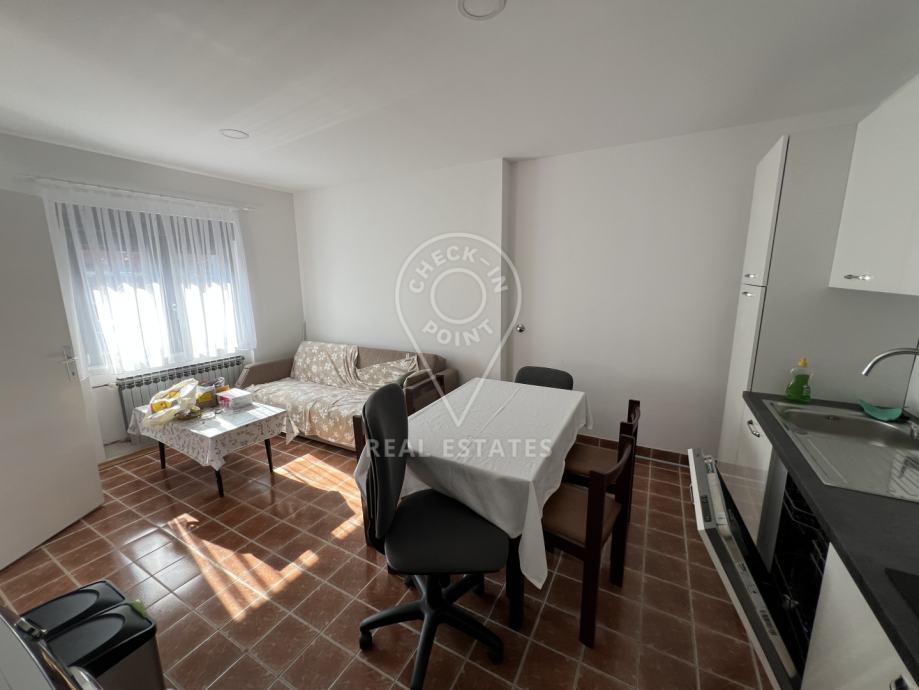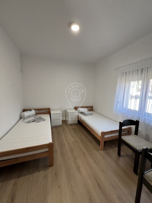 Prizemlje se sastoji od kuhinje sa blagavaonicom, (nova i potpuno opremljena kuhinja - štednjak, pećnica, perilica posuđa, hladnjak sa zamrzivačem), ulaznog hodnika, kupaonice s wc-om, dodatnog zasebnog wc-a te dvije spavace sobe, svaka sa po 2 jednostruka kreveta.