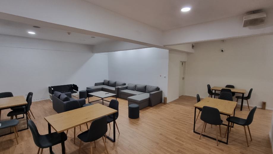 U prostoru se nalazi prostrani dnevni boravak površine 60 m2 sa 4 kuhinjska bloka.