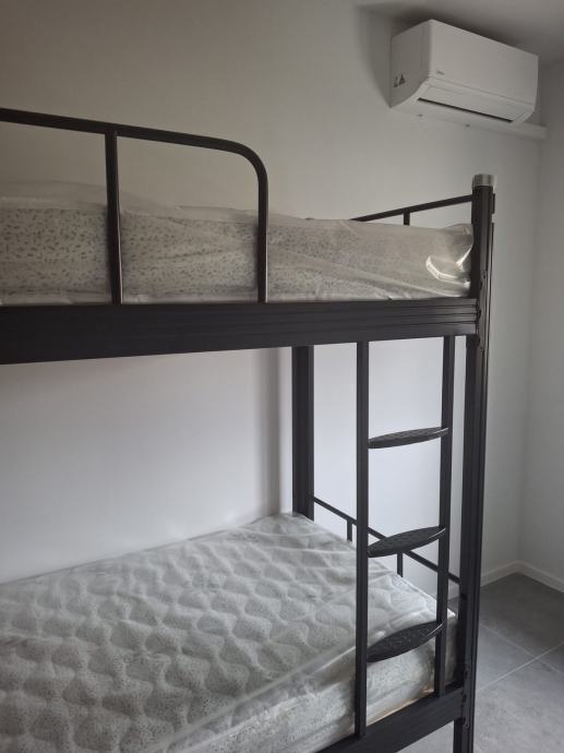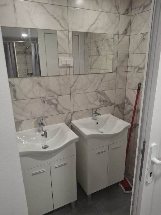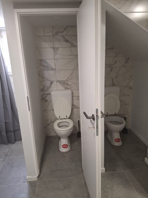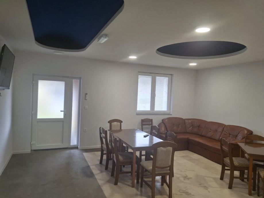Iznajmljuje se samostojeća kuća u Jakovlju-prvi najam. Potpuno namještena. Dnevni boravak sa sjedećom garniturom, blagavaonski stolovi sa stolicama. Wc sa wc školjkom,pisoarom i umivaonikom. Kupaonica sa 4 umivaonika, 4 tuša i 3 wc školjke. 2 kuhinje sa svim posuđem, 2 hladnjaka, 2 perilice rublja. 6 soba sa po 2 kreveta na kat i jedna soba sa jednim krevetom na kat. Prostor je klimatiziran. Podno grijanje i grijanje klimom.