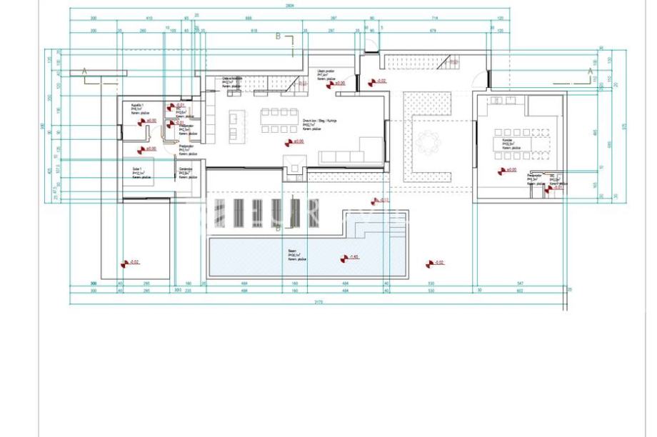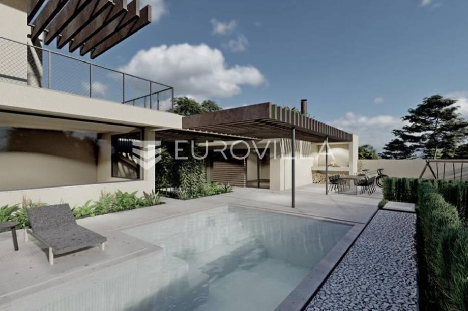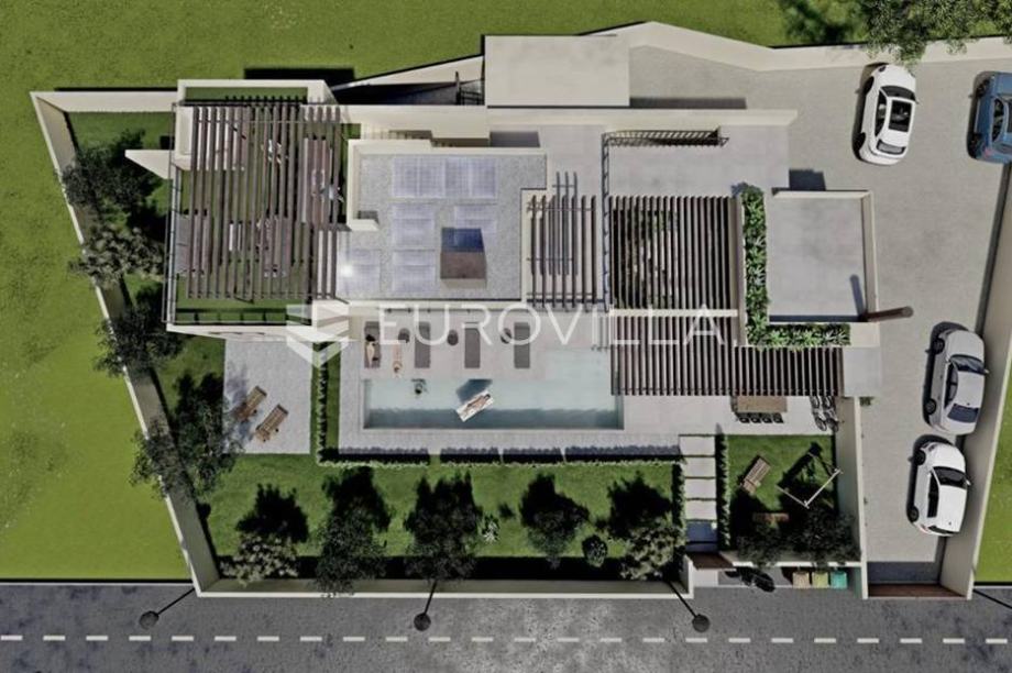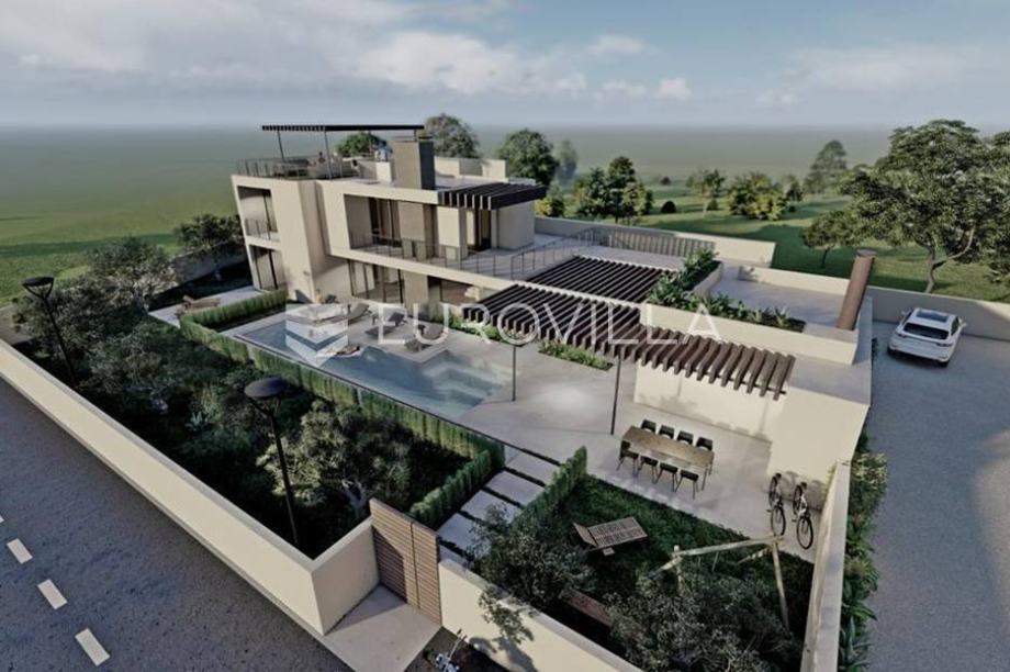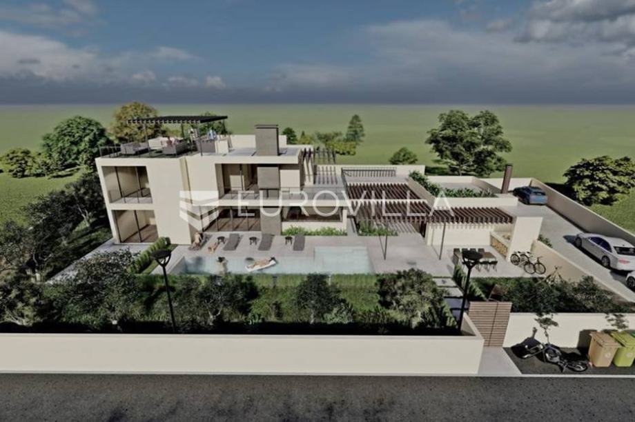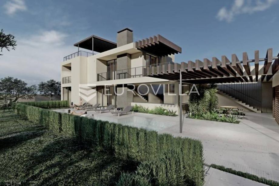 A fenced settlement with urban villas for individual sale is being built 10 km (5 minutes) from the center of Zadar. Villa 2 is being built on a land area of 1032 m2 in 2 floors, and the gross area of the villa is 358.7 m2. The land is surrounded by a wall 160-170 cm high. In the construction of...