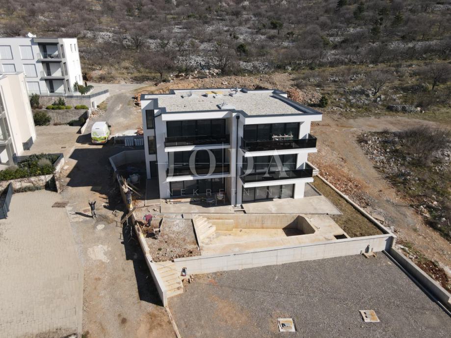 Na prodaju je ekskluzivan trosobni apartman s bazenom i očaravajućim pogledom na Podvelebitski kanal, ukupne stambene površine 90 m², smješten na drugom katu moderne i kvalitetno građene zgrade.