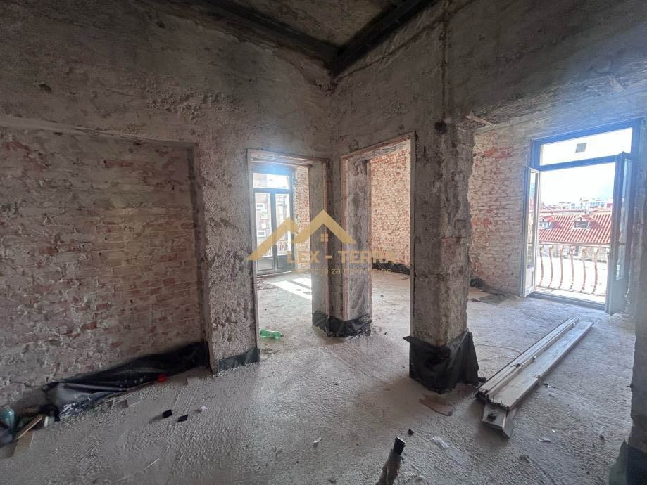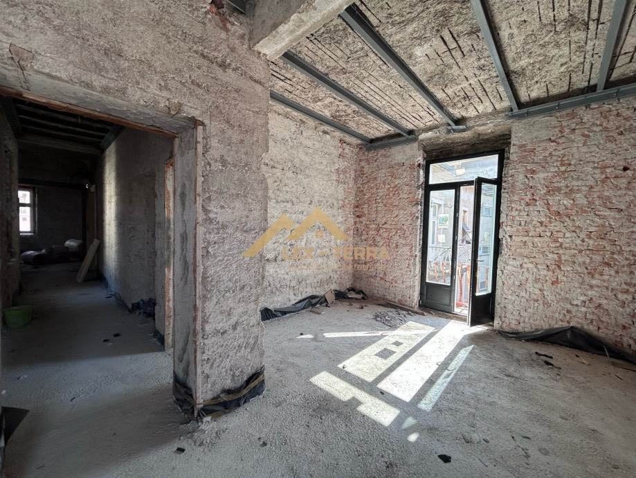 Stan je kompletno ogoljen do konstrukcije, spreman za završne radove po želji budućeg vlasnika. Svaka spavaća soba ima vlastiti izlaz na balkon. Zbog visokih stropova (3,5 m), prostor odiše elegancijom i potencijalom za moderan dizajn u spoju s povijesnim šarmom.