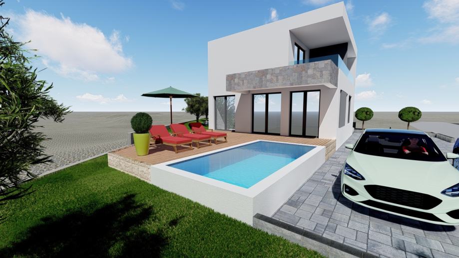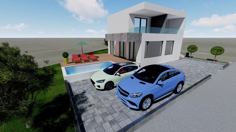ZADAR-RTINA, PRODAJE SE GRAĐEVINSKO ZEMLJIŠTE POVRŠINE 507 m2 UDALJENO SAMO 300 METARA OD MORA I PREKRASNE PLAŽE SA PRAVOMOĆNOM GRAĐEVINSKOM DOZVOLOM ZA LIJEPU I MODERNU SAMOSTOJEĆU KUĆU KATNICU (NE VELIKU, UKUPNE BRUTO POVRŠINE 150,50 m2) SA BAZENOM I SA PREKRASNIM POGLEDOM NA MORE KOJI SE NE MOŽE ZAKLONITI! (jer se zemljište nalazi na takvoj poziciji).