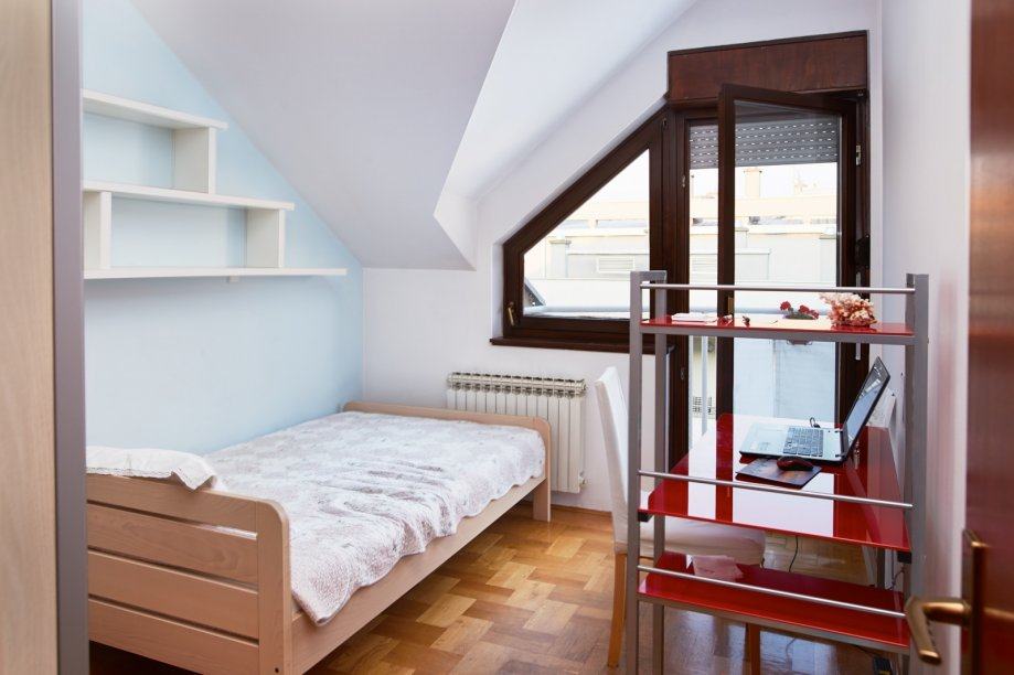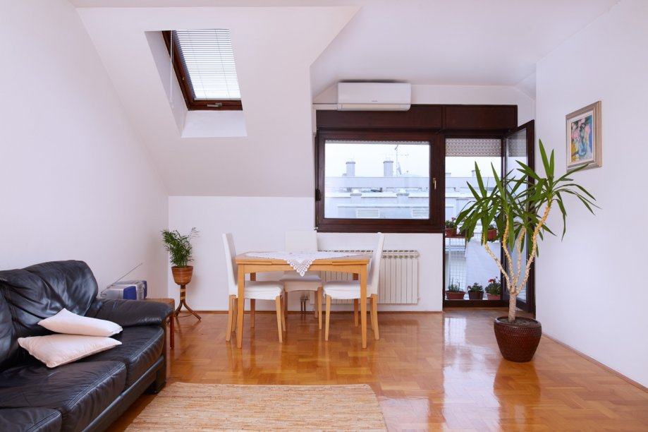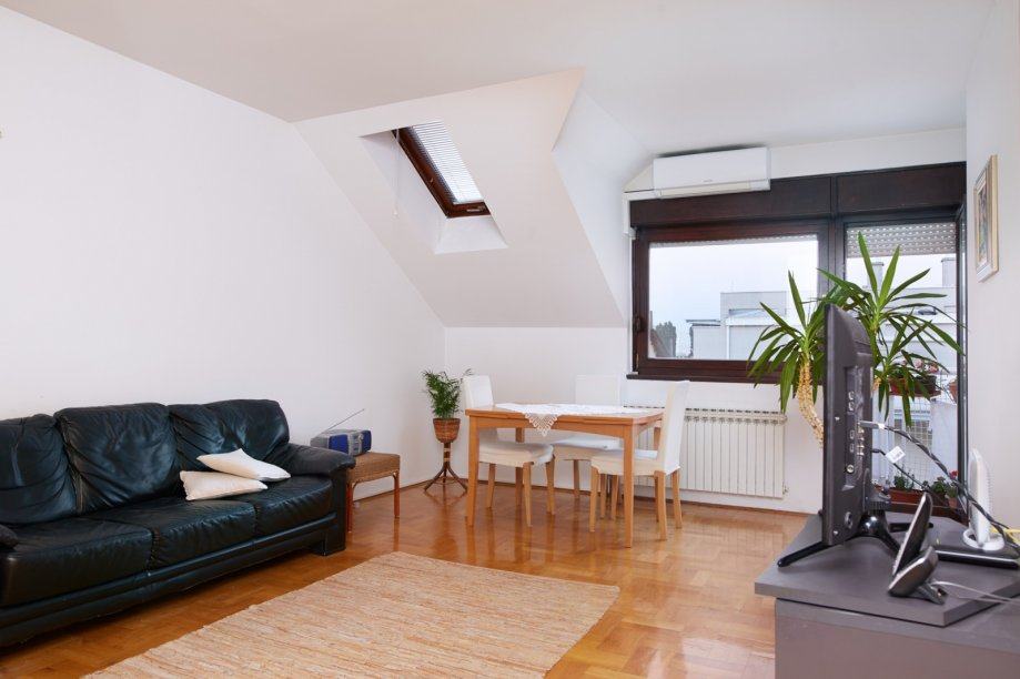 U komfornom stanu iznajmljujem lijepo namještenu sobu sa velikim balkonom. Upotreba kuhinje, blagovaonice, kupaonice (i posebni WC), etažno plinsko grijanje, 30/10 Mbit/s internet.