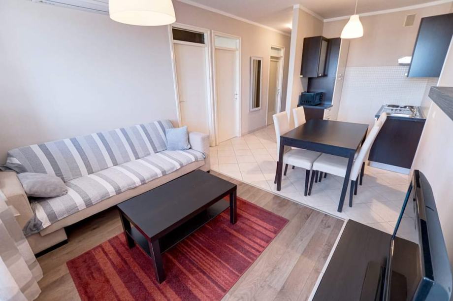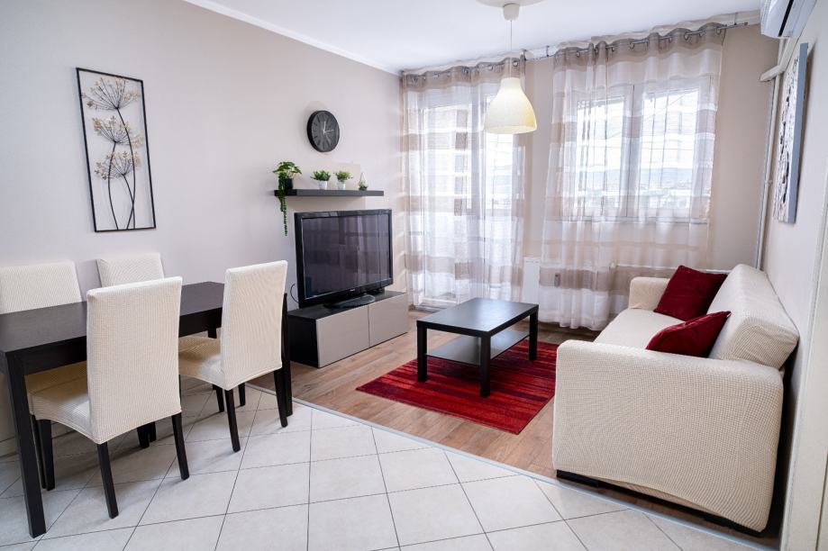 Stan se nalazi na Turniću, što je 2 km od centra, i neposrednoj blizini svih potrebnih sadržaja, uključujući i velebni zapadni trgovački centar. Prekrasan panoramski pogled. Režije uključene.