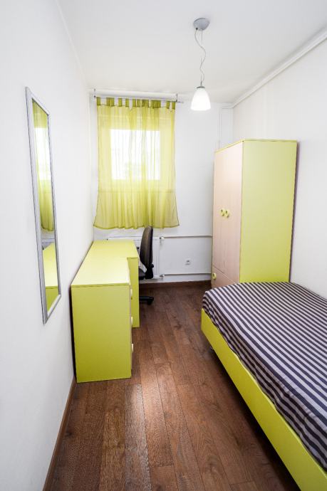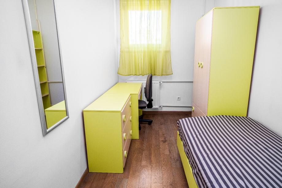 Soba se nalazi u potpuno namještenom trosobnom stanu u kojem borave još dvoje studenata. Svatko ima svoju sobu pod ključem, a zajedničke prostorije su dnevna soba, kuhinja, kupaona te balkon. Stan je čist, uredan i redovno održavan.