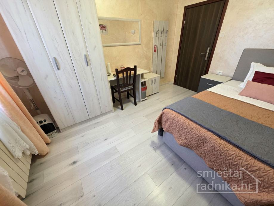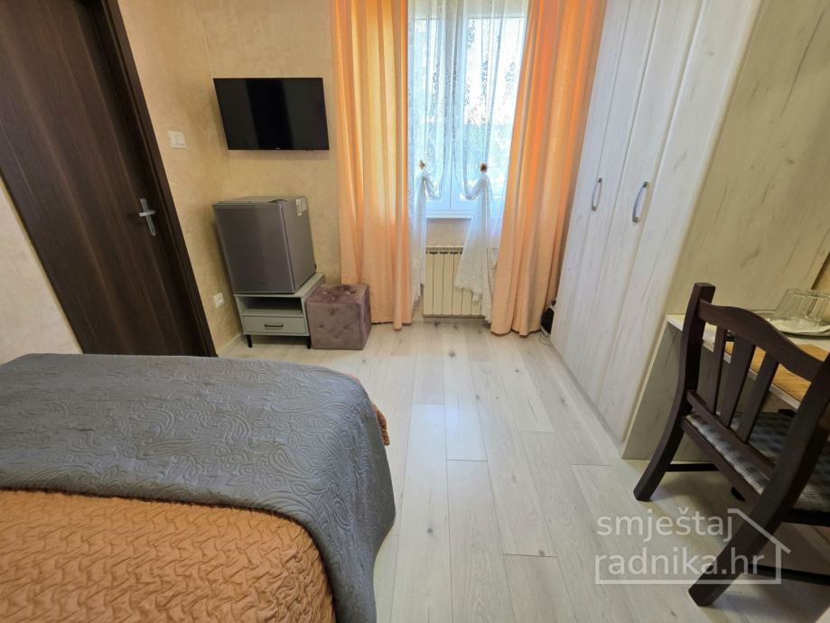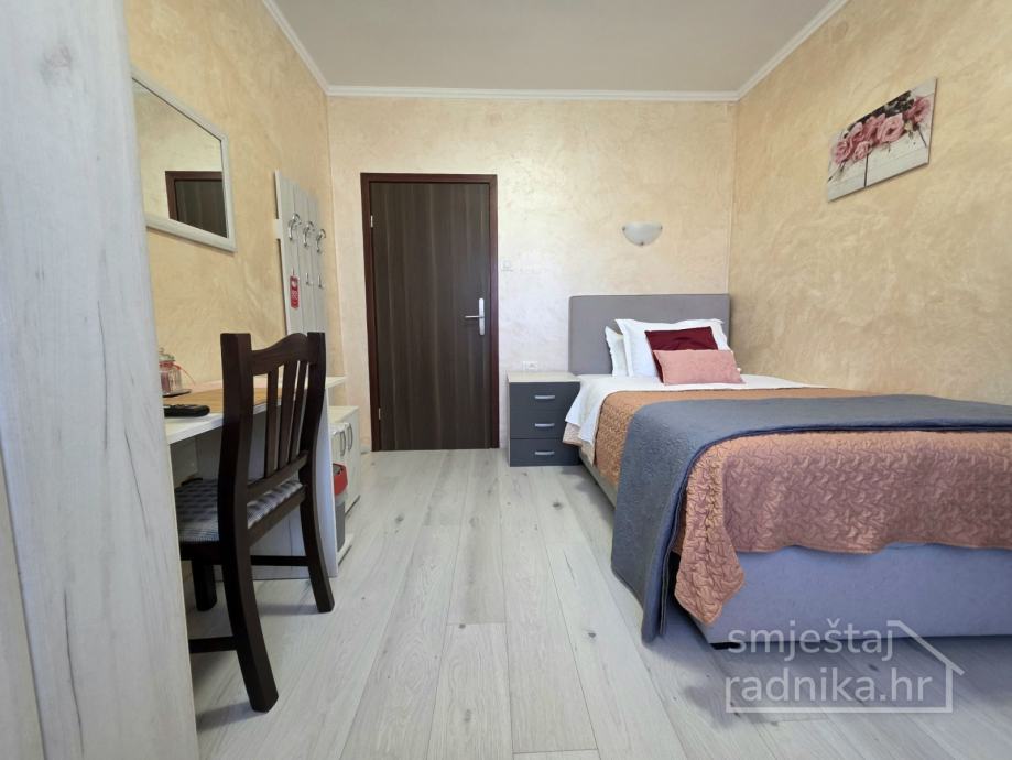 Soba je opremljena krevetom, ormarom, frižiderom i vlastitom kupaonicom.