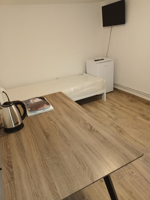 Iznajmljuje se soba 13 m2 u sklopu dvosobnog stana. Soba pored kreveta i ormara ima stol, hladnjak TV i WI-FI. Svaki cimer ima svoju sobu a kupaonica i mini kuhinja su zajedničke.