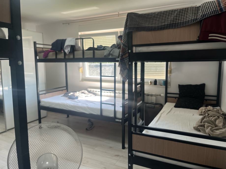 Two houses at the same address Obreška ulica 105 Novi Zagreb,for accommodation for 12 workers, 15 minutes away from the Arena center. The accommodation is fully furnished with beds, kitchen, bathroom, and all the necessary appliances and accessories. Parking lot about 400m2 for vehicles. Mini market 200m away, doctor, 200m, bus stop 200m. Bus lines 160 and 163 every 30 minutes to the center.