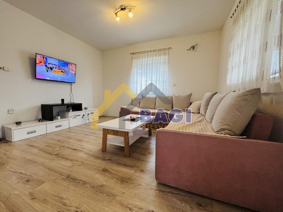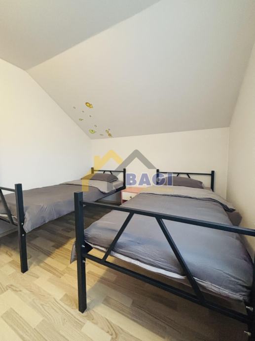 Kuća se sastoji od 3 spavaće sobe, kuhinje sa blagavaonom, dnevnog boravka sa još jednom blagavaonom, 2 kupaonice, predvorja, hodnika te garaže.