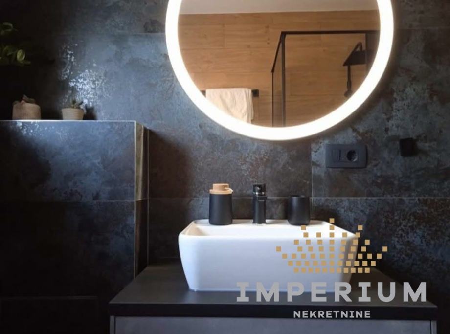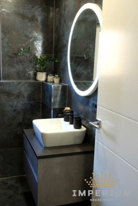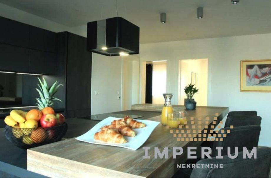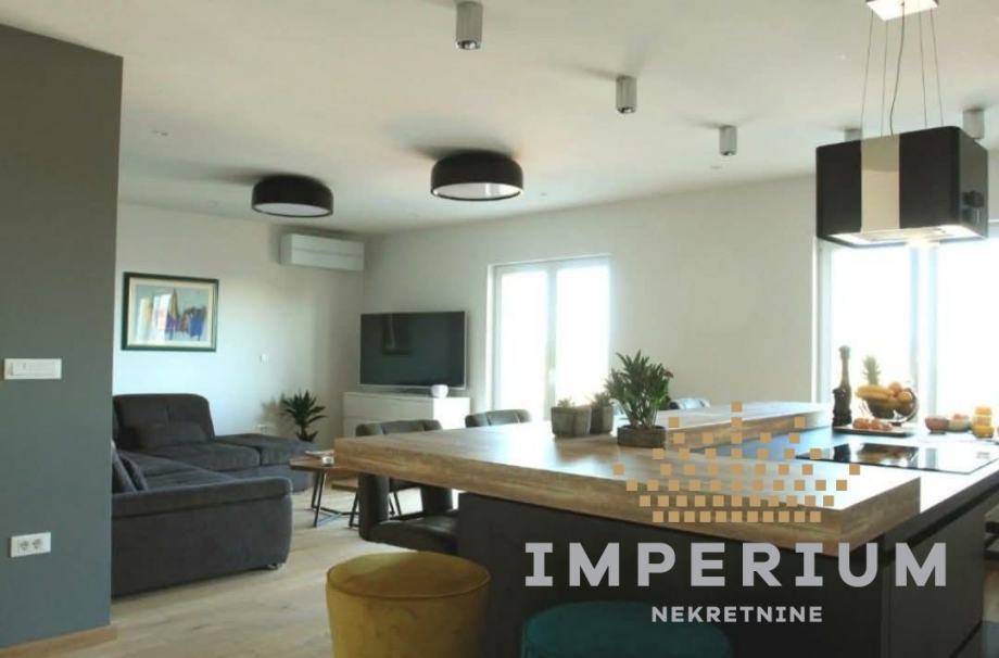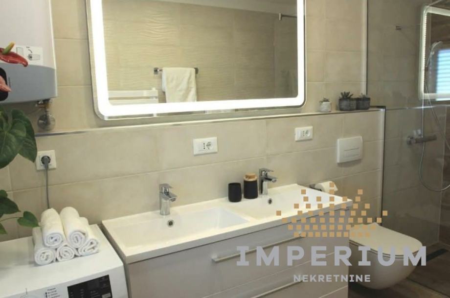 Stan se nalazi na 2. katu kuće, ima 100 m2, a sastoji se od tri spavaće sobe, kuhinje s blagovaonom, dnevnog boravka, dvije kupaonice, hodnika i balkona. Svaka soba i dnevni dio su klimatizirani, 4 klima uređaja. U kupaonicama se nalaze grijalice i podno grijanje.