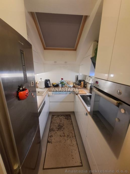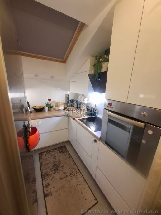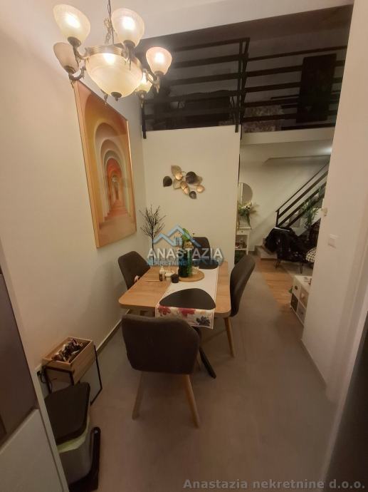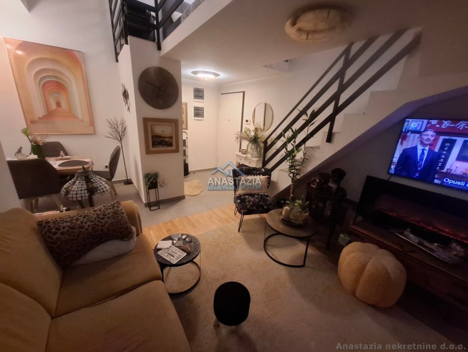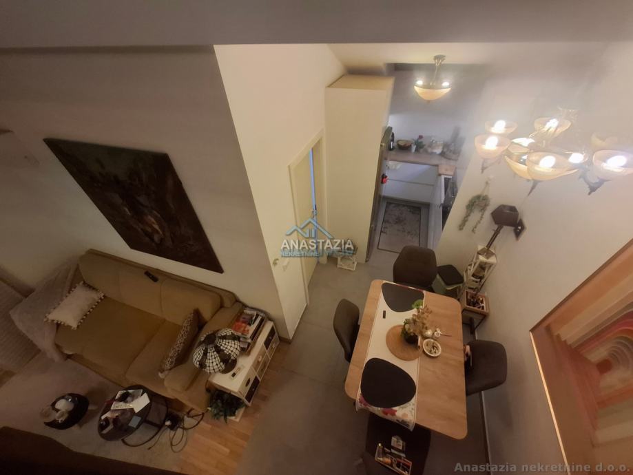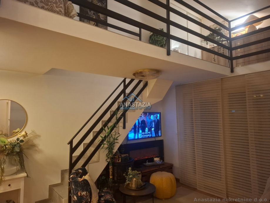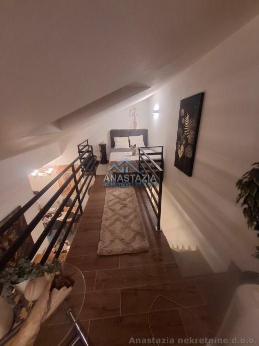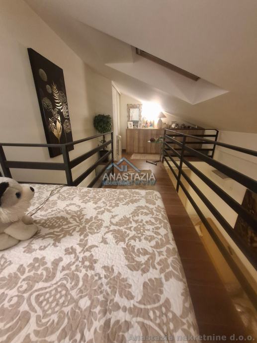 Posebnost ove nekretnine je u maksimalnoj iskoristivosti samoga prostora koji se sastoji od ulaznog hodnika s ugradbenim plakarom , kuhinje trpezarije i dnevnog dijela s izlaskom na prekrasnu lođu , odvojene spavače sobe s kupaonicom i u galeriji smještenoj drugoj sobi .Nekretnina je opremljena vrhunskim namještajem , velikim garderobnim ormarima , kuhinjom po mjeri.