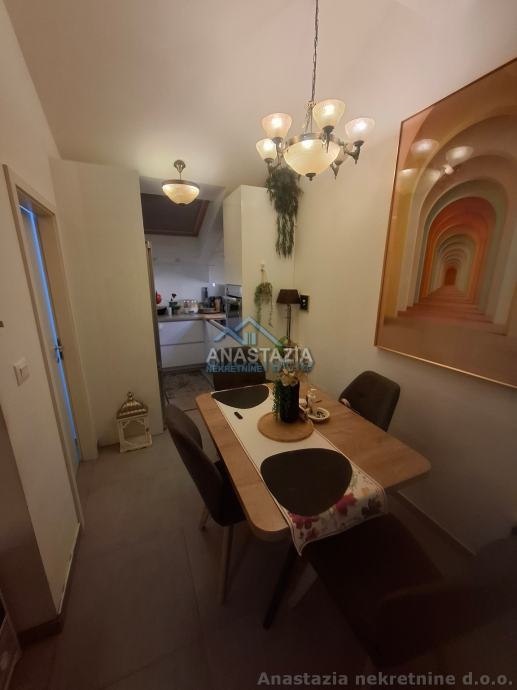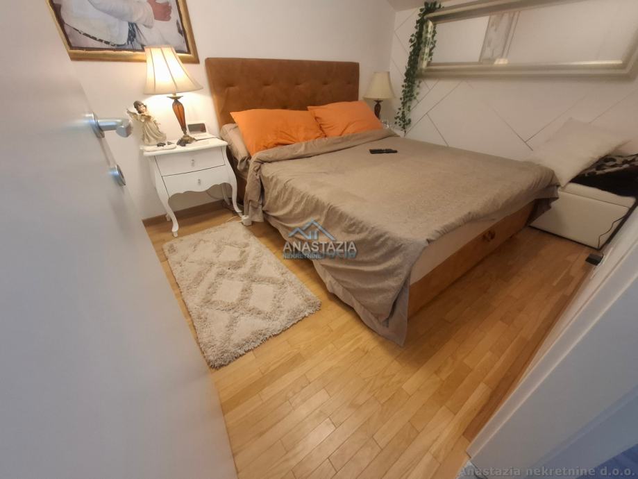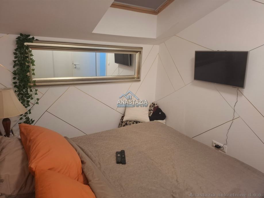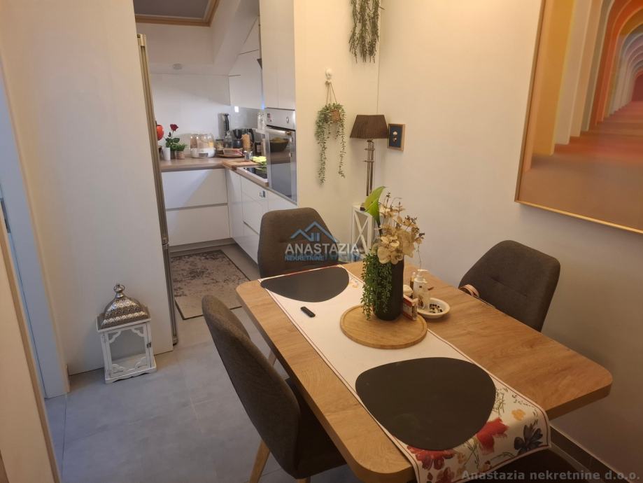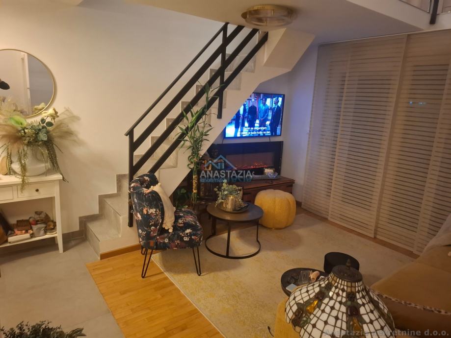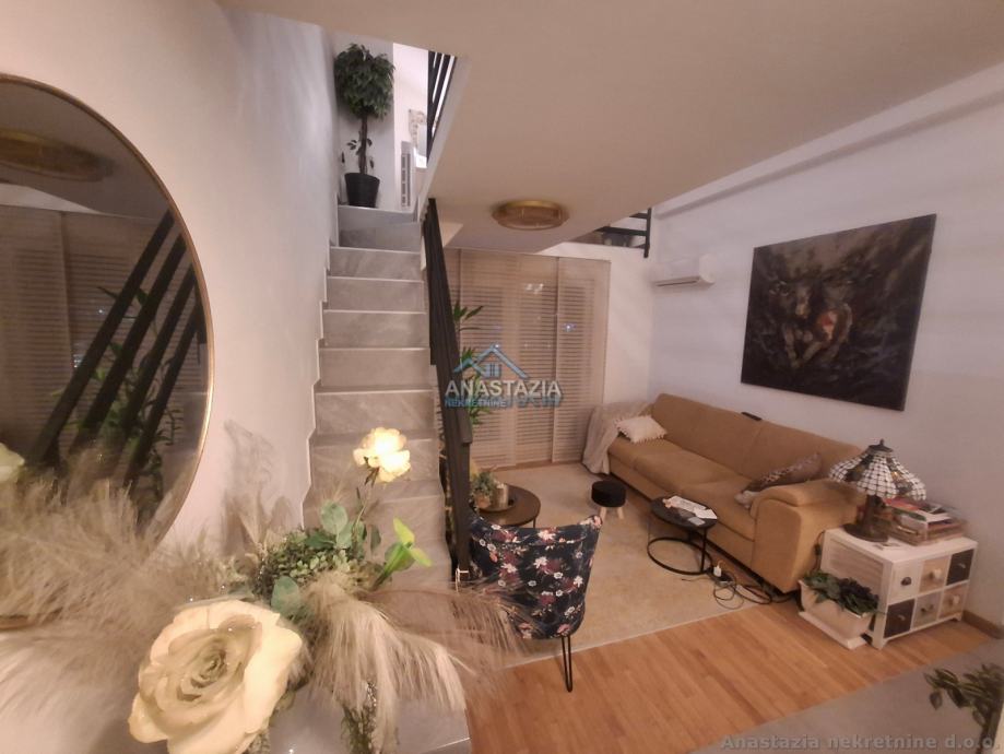 Posebnost ove nekretnine je u maksimalnoj iskoristivosti samoga prostora koji se sastoji od ulaznog hodnika s ugradbenim plakarom , kuhinje trpezarije i dnevnog dijela s izlaskom na prekrasnu lođu , odvojene spavače sobe s kupaonicom i u galeriji smještenoj drugoj sobi .Nekretnina je opremljena vrhunskim namještajem , velikim garderobnim ormarima , kuhinjom po mjeri.