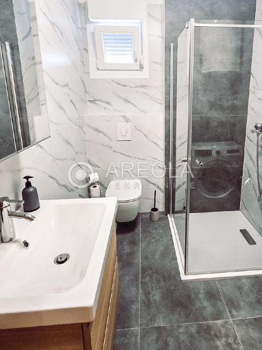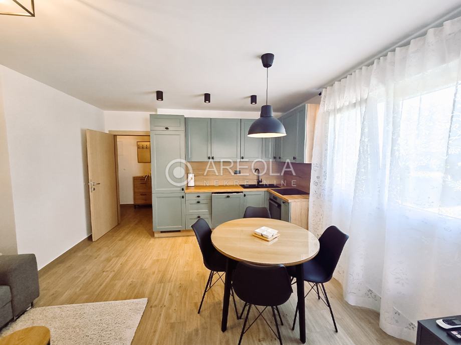Stan je potpuno namješten i opremljen novim namještajem, a uz njega je osigurano i vanjsko parkirno mjesto.