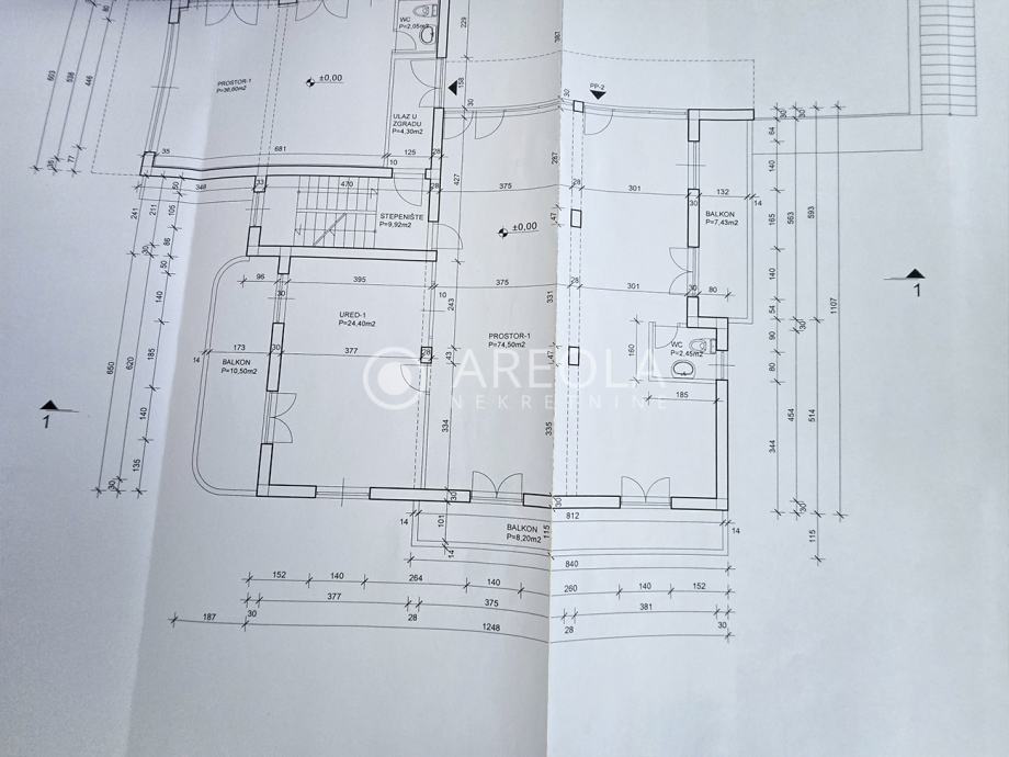 Prostor se nalazi u prizemlju privatne kuće i ukupne je površine 105 m². Sastoji se od većeg otvorenog prostora, jedne zasebne uredske prostorije te sanitarnog čvora. Prostor je potrebno preurediti i prilagoditi prema vlastitim potrebama, što predstavlja odličnu priliku za zakupce koji žele kreirati poslovni prostor u potpunosti prilagođen specifičnostima svoje djelatnosti.