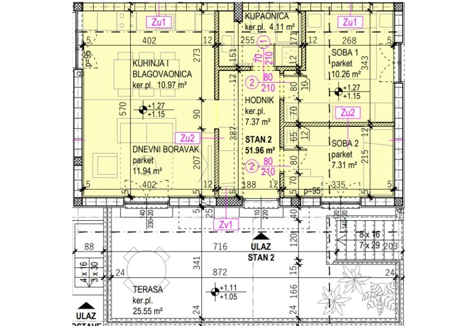 UNUTARNJA POVRŠINE STANA 51,96 M2