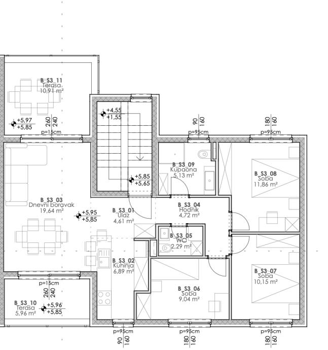 Solin, Mravinci, in a quiet location ideal for family life, the construction of a small residential building with a modern look, with a functional layout of residential units is planned.Apartment S6 - is located on the second floor, and is a three-room apartment. It consists of an entrance hall,...