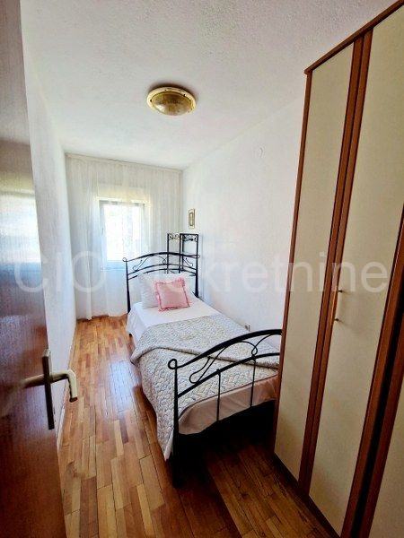 Stan ima 110m2, 3 prostrane sobe, kuhinju, blagovaonicu, kupaonicu, balkon, vrt, garažno mjesto.