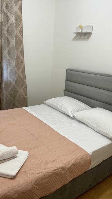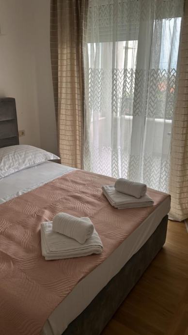 Iznajmljuje se novouređeni stan na prvom katu kuće. Sastoji se od dvije spavaće sobe, hodnika, kupaone, kuhinje sa dnevnim boravkom i dva balkona.