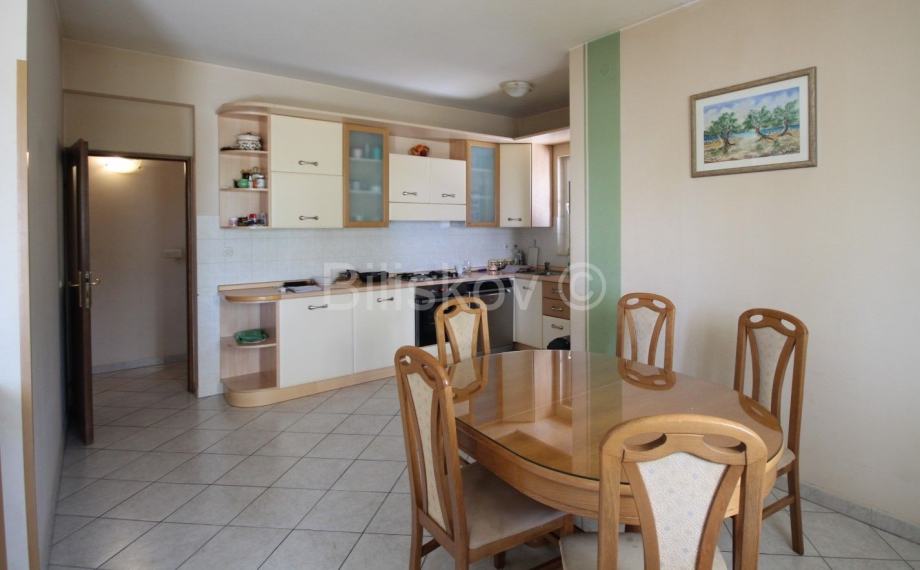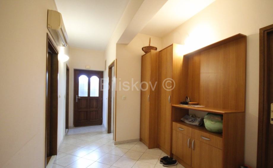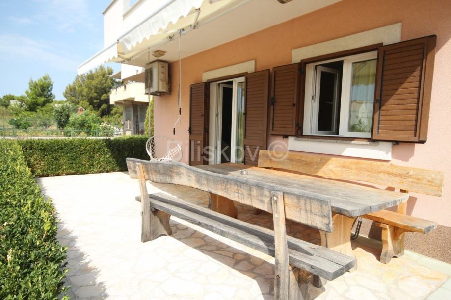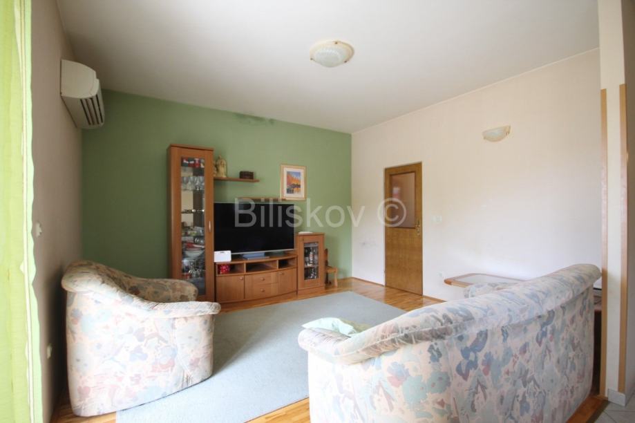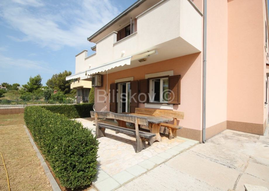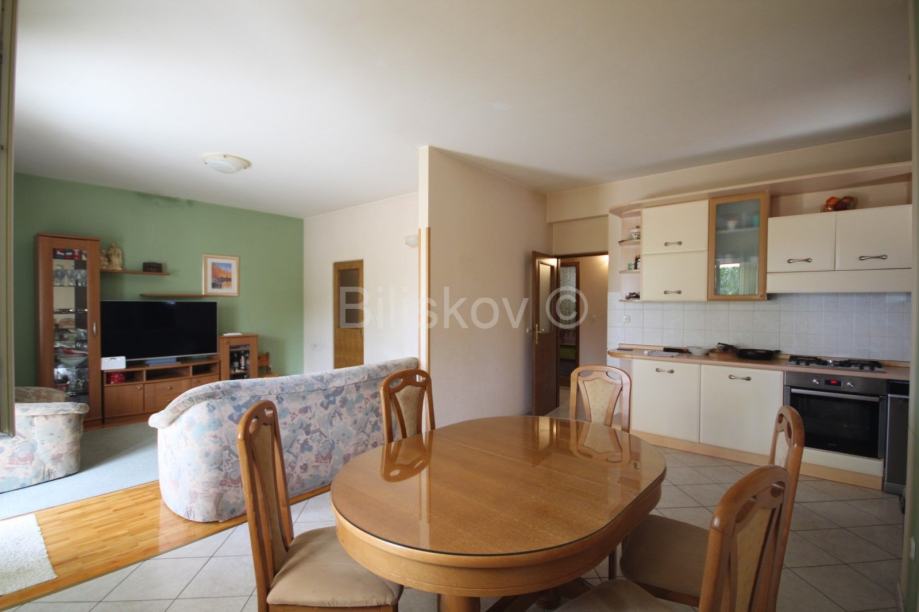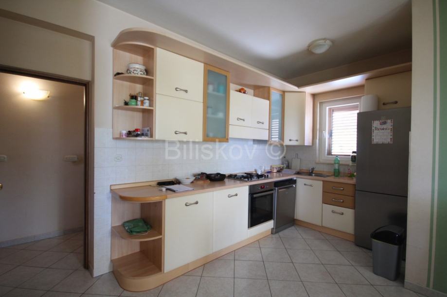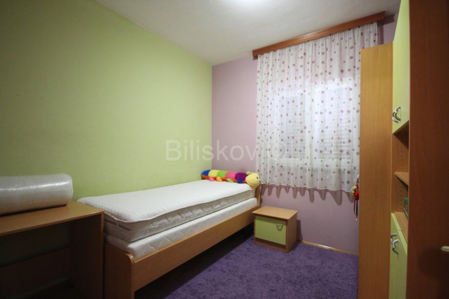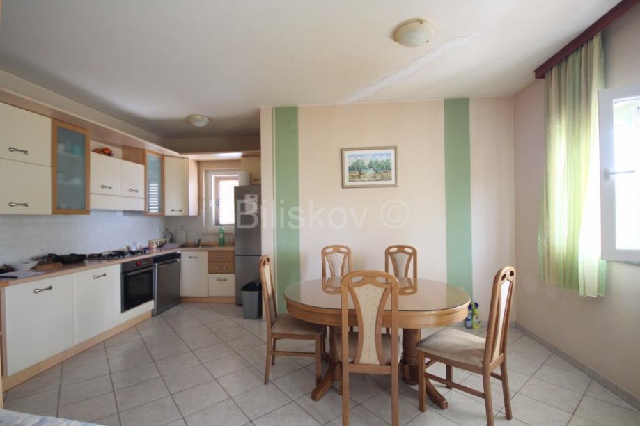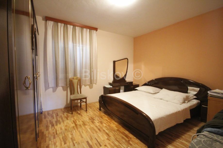 U prizemlju se nalazi komforan trosoban stan površine 127 m2 koji se sastoji od kuhinje s blagovaonicom i dnevnim boravkom, 3 spavaće sobe i kupaonice.