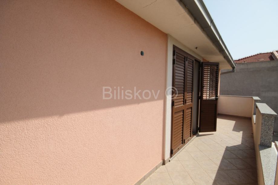 Ispred stana je dijelom natkrivana terasa i vanjski komin. Ovaj stan je u potpunosti završen.