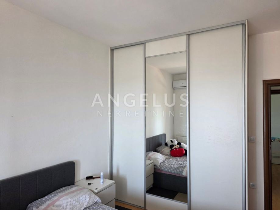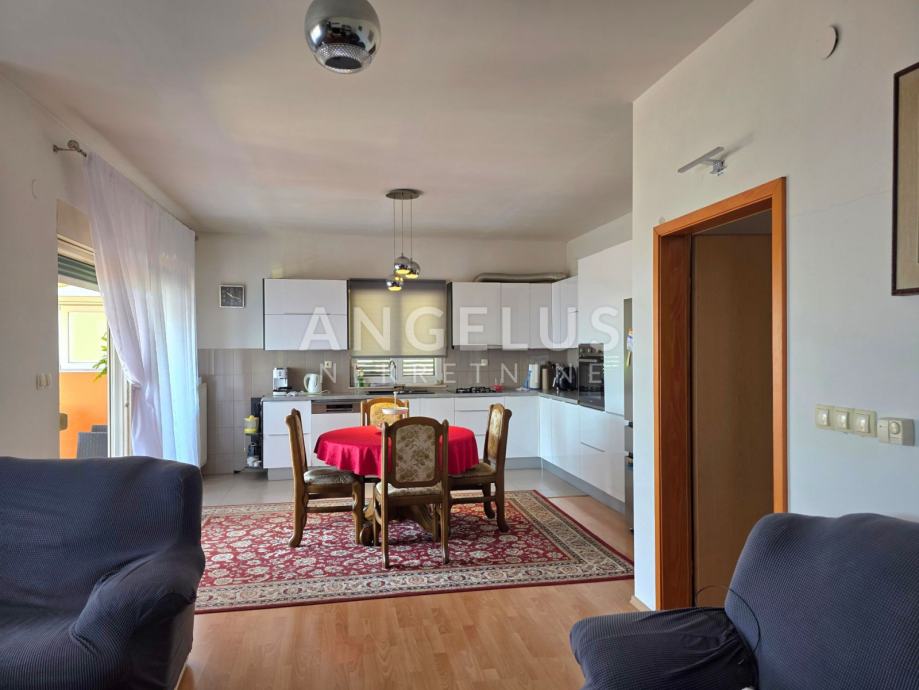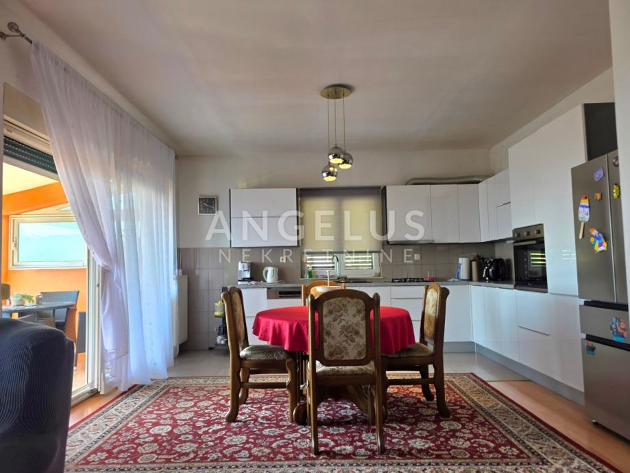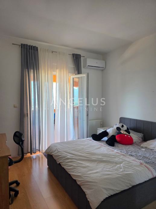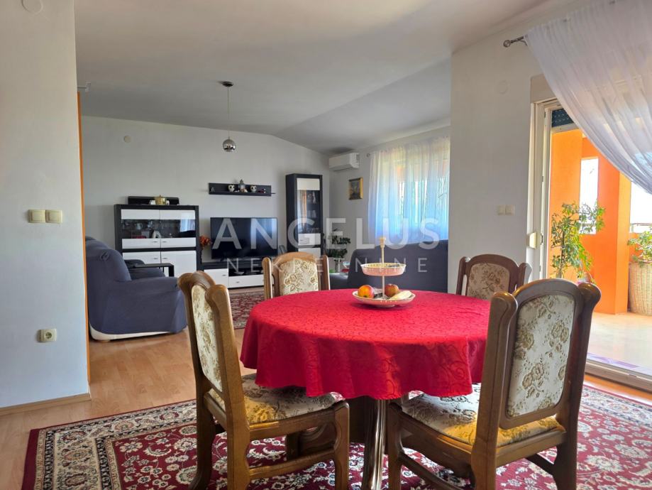 Dvosoban stan se nalazi na gornjoj etaži i veličine je 77 m2; dvije spavaće sobe, hodnik, kupaonica, dnevni dio sa kuhinjom i blagovaonicom iz koje se izlazi na balkon veličine 12 m2.