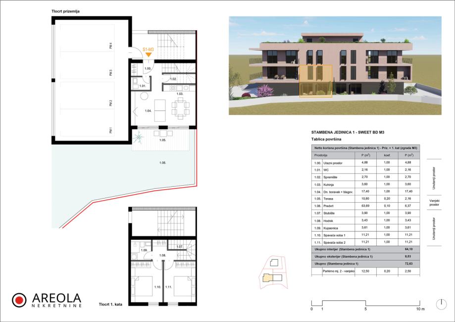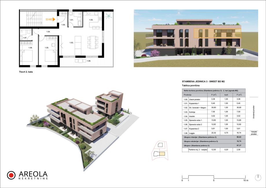 U galeriji možete pogledati tlocrte svih dostupnih stanova, dok su detaljnije informacije i pojedinačni oglasi dostupni na našoj web stranici: www.areola-nekretnine.com
