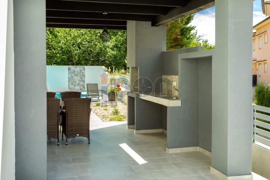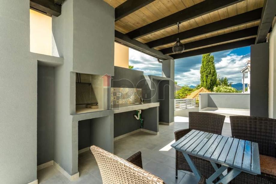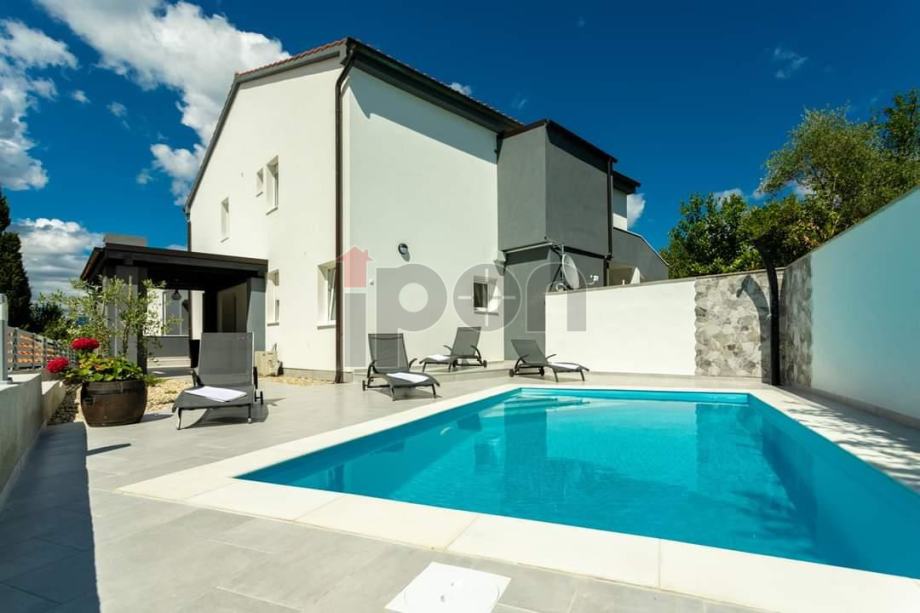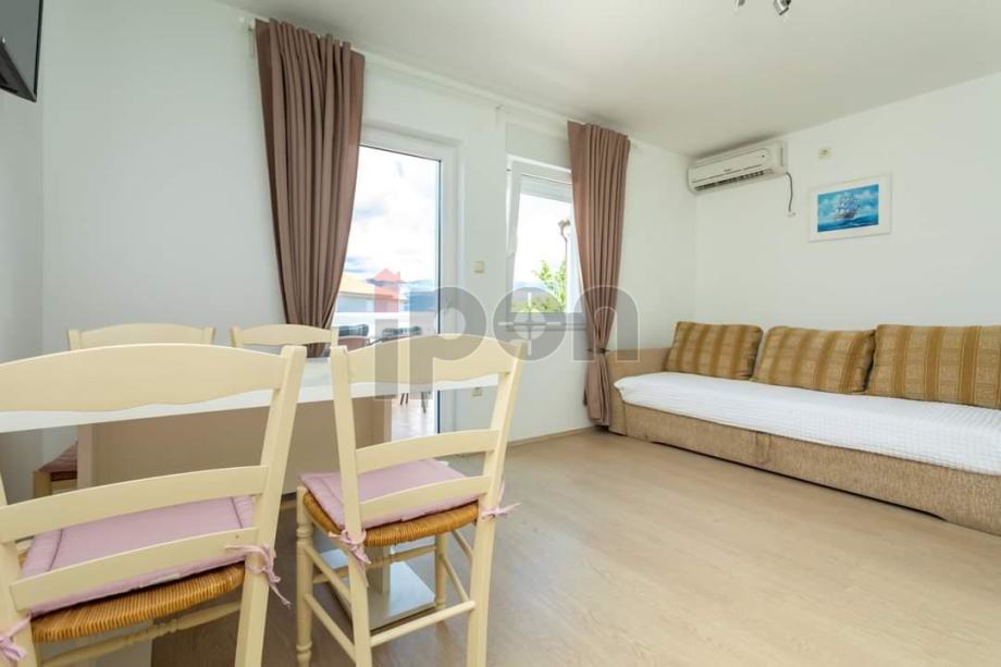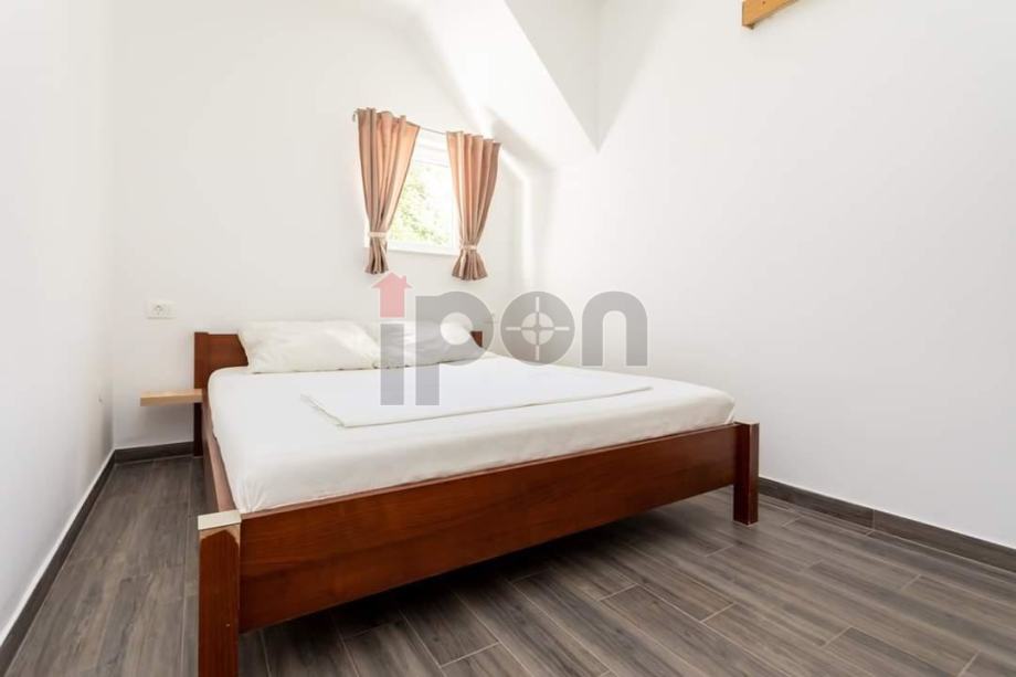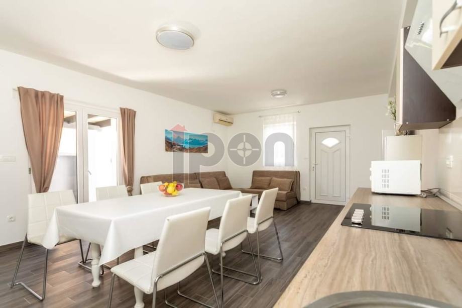 Apartmanska kuća nalazi se na odličnoj lokaciji koja se sastoji od prizemlja i kata. U prizemlju su smještena dva jednosobna apartmana i dva studio apartmana sa posebnim ulazima i terasom. Na katu se nalaze dva dvosobna apartmana, sa terasama i prekrasnim pogledom na more. Kuća je etažirana, tako da svaki apartman ima svoj vlasnički list. Na okućnici je izgrđen bazen. Kuća je u potpunosti namještena i spremna za turističku djelatnost. Udaljenost od mora cca 100 m. Izvorno je sagrađena 2005 godine, renovirana 2020. godine.