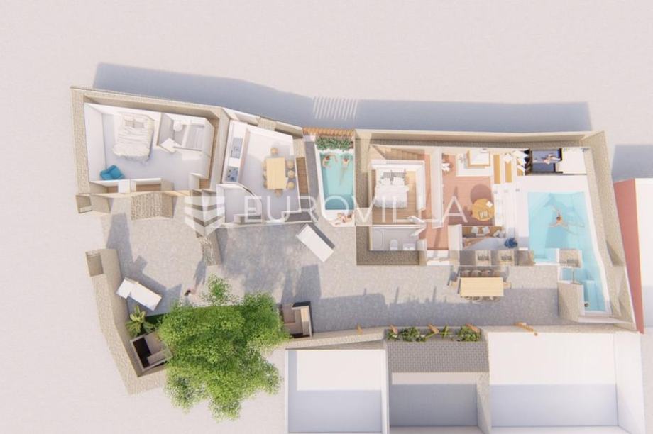A stone house with an area of 200m2, located in the very center of Gornji Selo, offers an ideal combination of comfort and traditional charm. It consists of two bedrooms, a bathroom, a large dining room, a kitchen and a pantry.The house stands out with two terraces that offer a beautiful view,...
