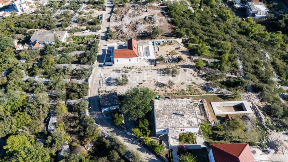 Nalazi se u mirnom predjelu, okruženo je zelenilom, a sa parcele se pruža otvoreni prekrasni pogled na more, zelenilo i sam centar mjesta.