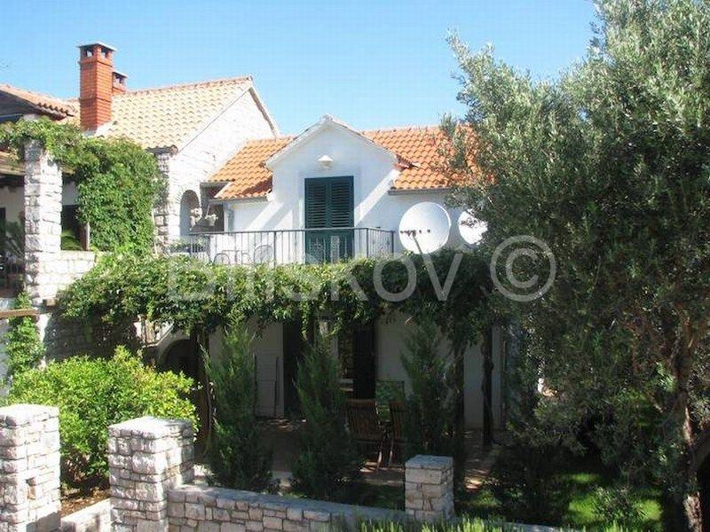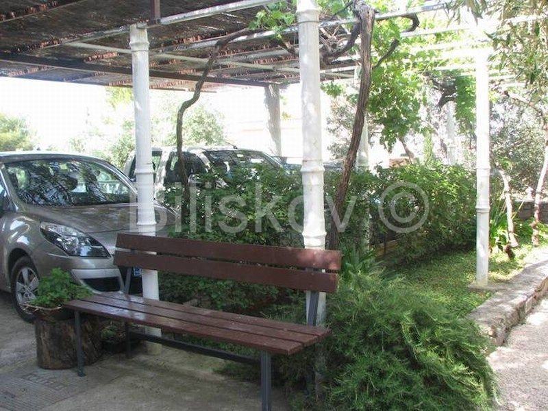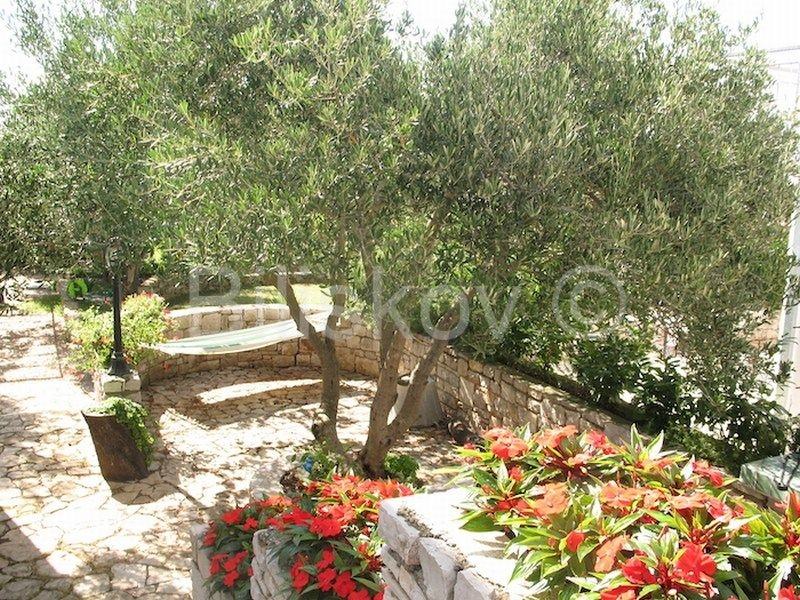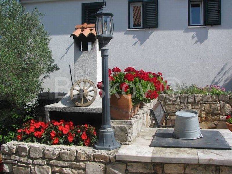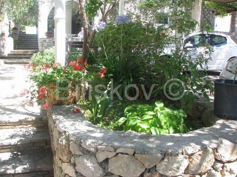 Okućnica je uređena, dijelom popločana, dijelom cvjetnjak. Velika, kultivirana okućnica sa mediteranskim raslinjem pruža mogućnost zaštite privatnosti, iako je smještena u centru, te blizini mora.