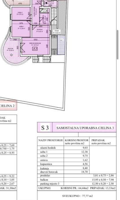 Prostire se na 77,77 m2, a smješten je na prvom katu stambenog objekta preko tri etaže sa ukupno pet stambenih jedinica.
