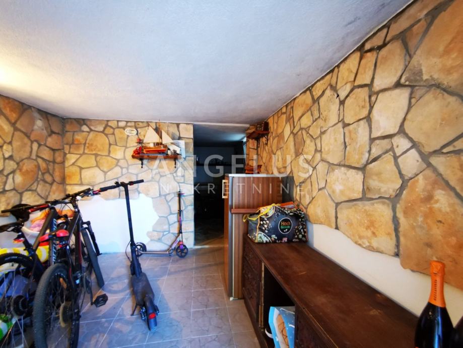 Kuća ima i funkcionalnu konobu koja je uređena na način da se tu nalazi spremište, kamin te dodatni toalet, što prostoru daje praktičnost i veliku dodatnu vrijednost.