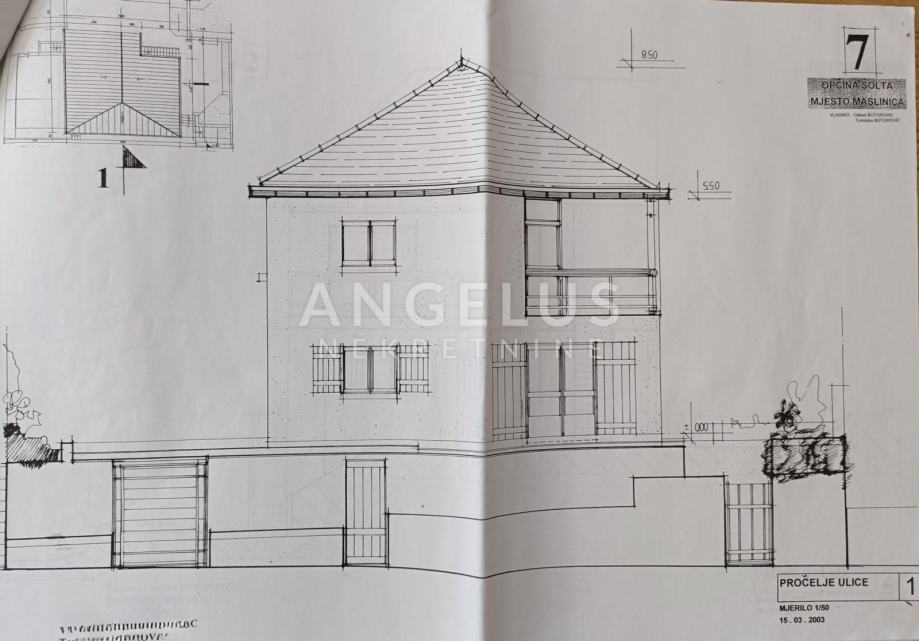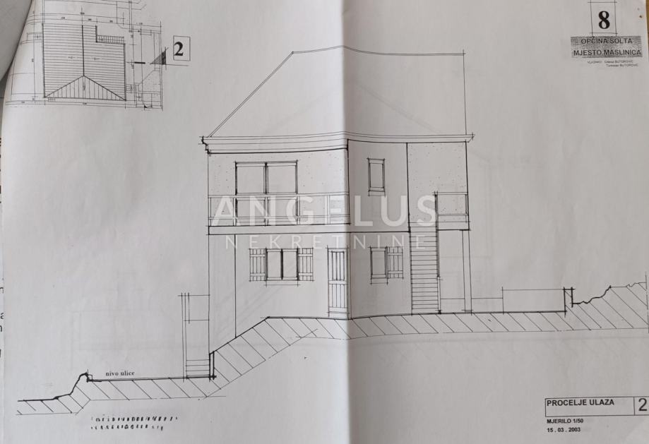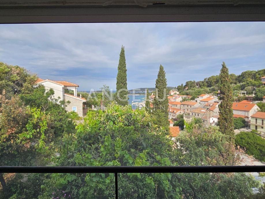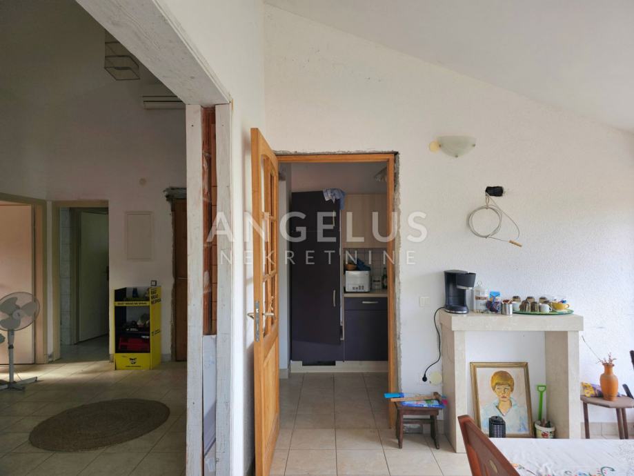 The external stairs lead to the upper floor, where there is another two-bedroom apartment consisting of a living room, kitchen, two bedrooms, bathroom and a closed loggia that is used as a dining room. Both floors have an open view of the sea and greenery, especially from the upper floor, where there is a wonderful view of the west side, where the waterfront, the sea and the islands are in the distance.