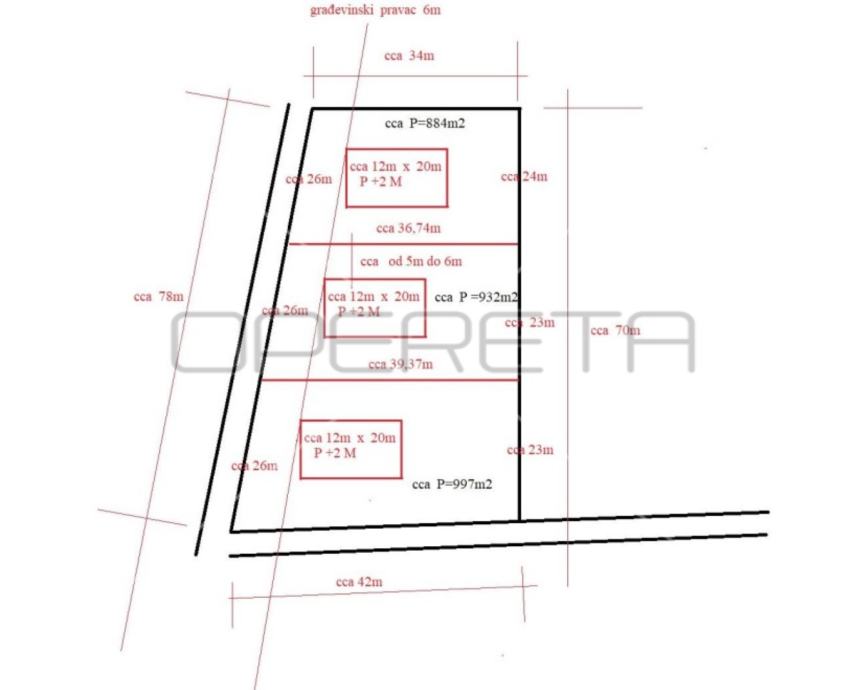 Zemljište je trenutno u komadu, postoji mogućnost parcelizacije prema navedenom prijedlogu, koji nije konačan.