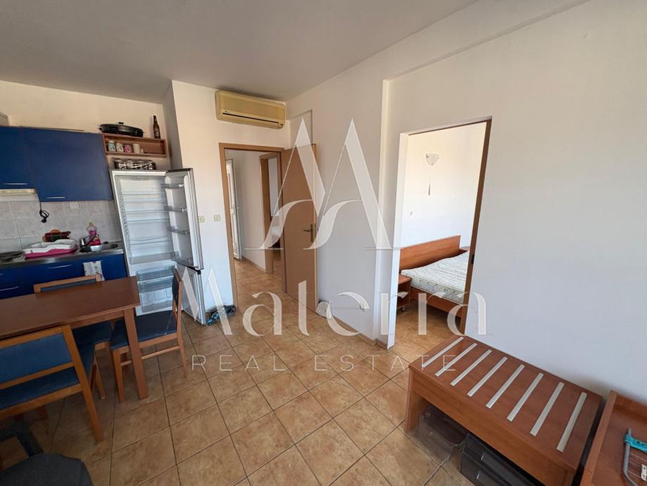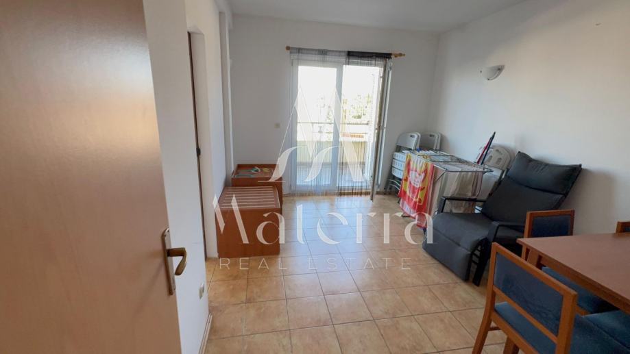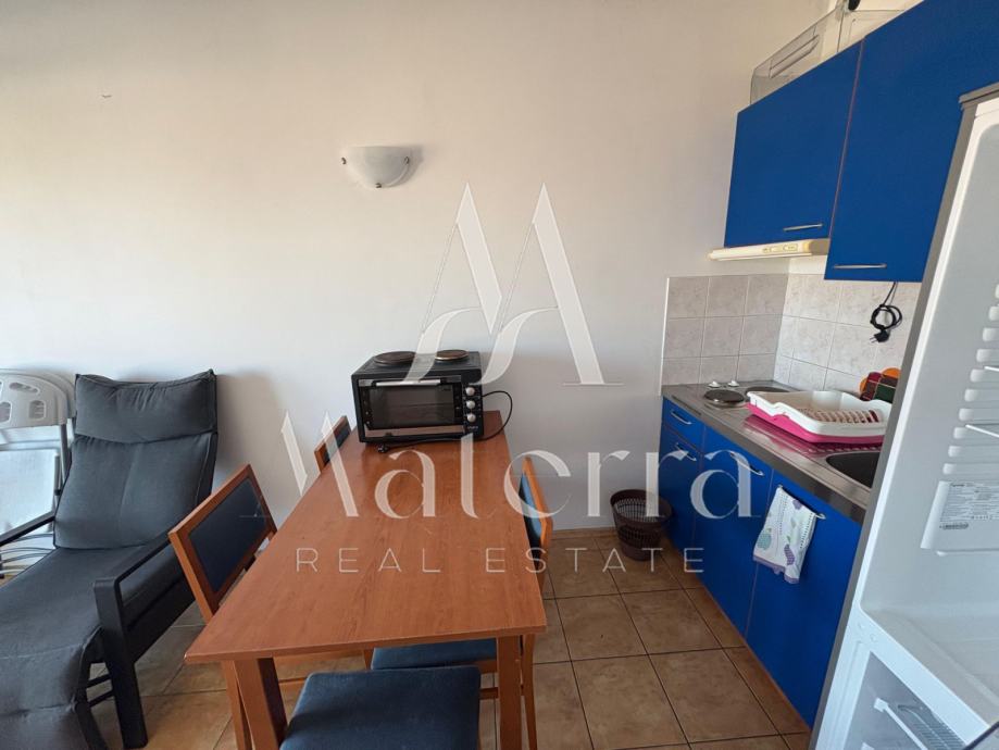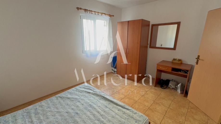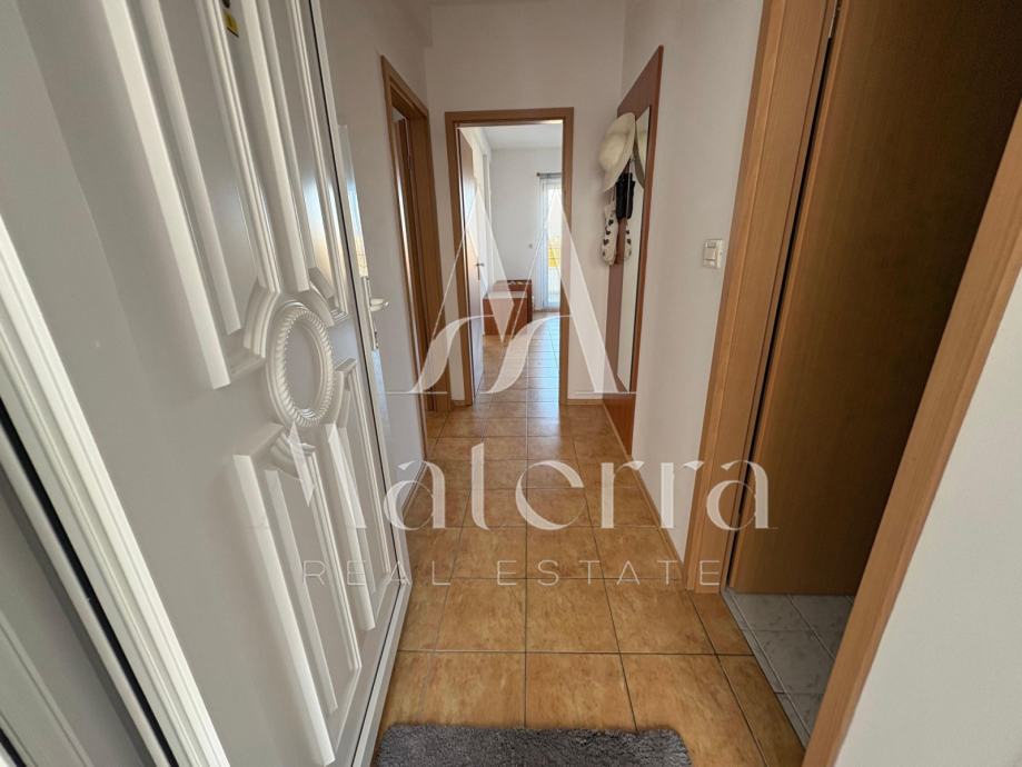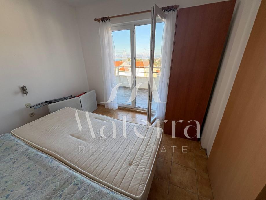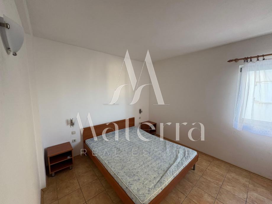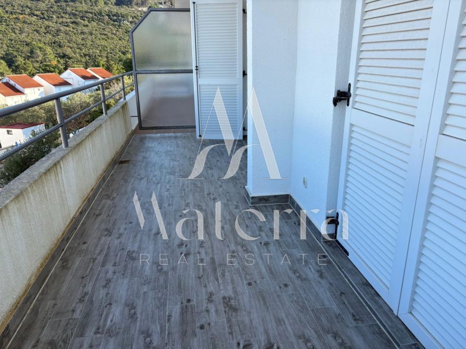 Apartman se nalazi na 1. katu, ukupne površine 65 m², te se sastoji od dvije spavaće sobe, dnevnog boravka, kuhinje, kupaonice i velike terase s pogledom na more.