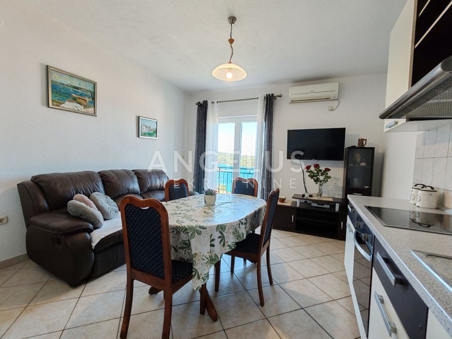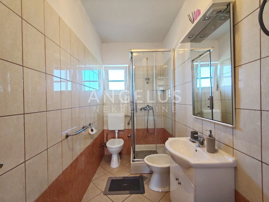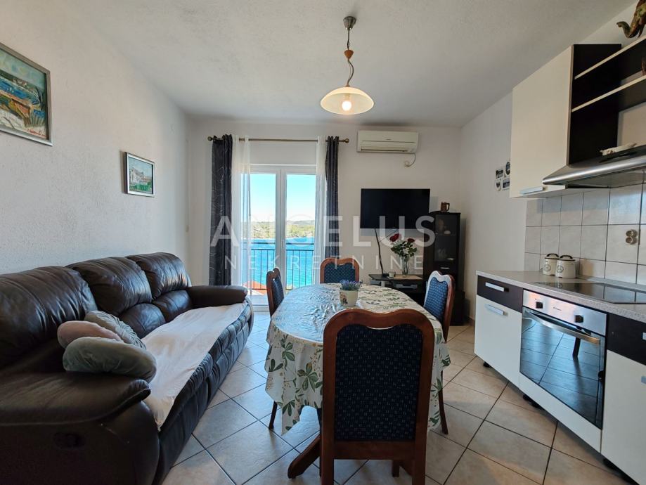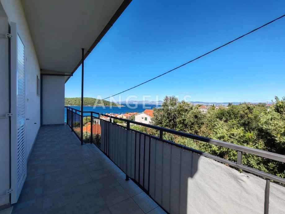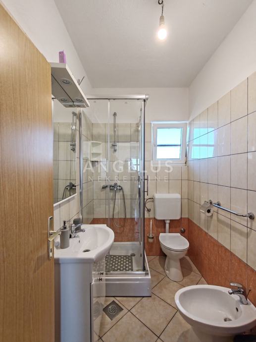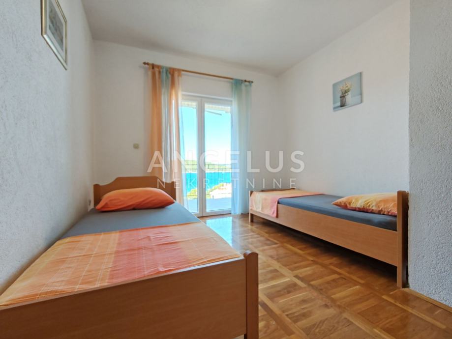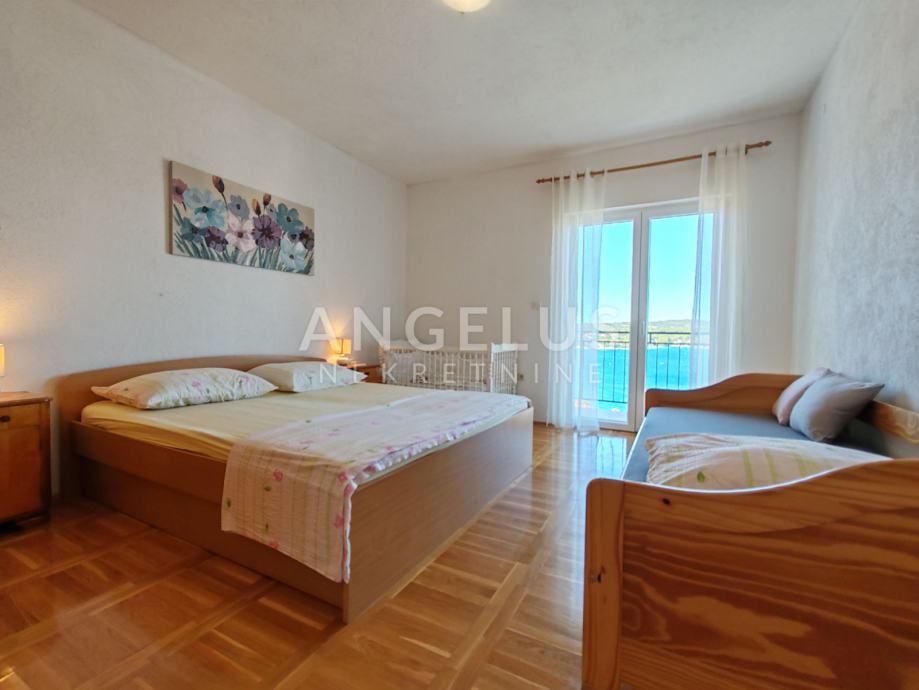 Na katu se nalazi trosobni stan koji ima izlazak na veliku natkrivenu terasu sa koje se pruža prekrasan pogled na more. Velika vrijednost ove kuće lež upravo u ovoj terasi.
