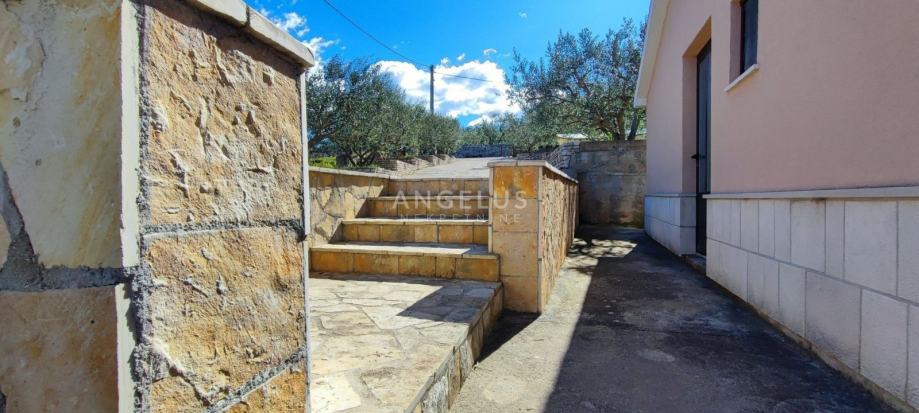 Velika dodana vrijednost ove nekretnine je prekrasna okućnica gdje su posađene masline, limuni, naranče, smokve i druge biljke. U dvorištu se nalazii kameni roštilj i veliki kameni stol, a cijela parcela je okružena kamenim zidom sa svih strana šta daje prekrasan dalmatinski i mediteranski ugođaj.