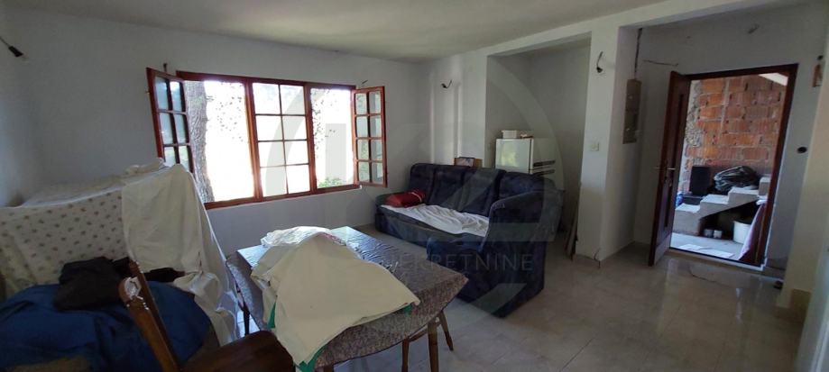 u prizemlju se nalazi uređen apartman 62 m2 sa svim priključcima te se se sastoji od dnevnog boravka sa kuhinjom i blagovaonicom, dvije sobe i izlaz na terasu, dok je preostali dio kuće roh-bau.