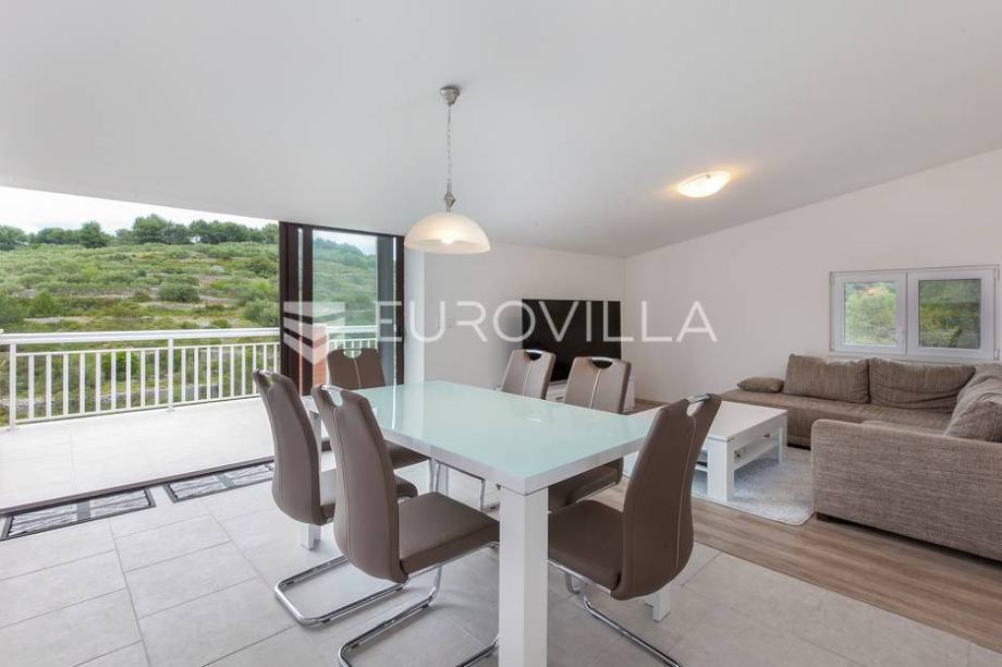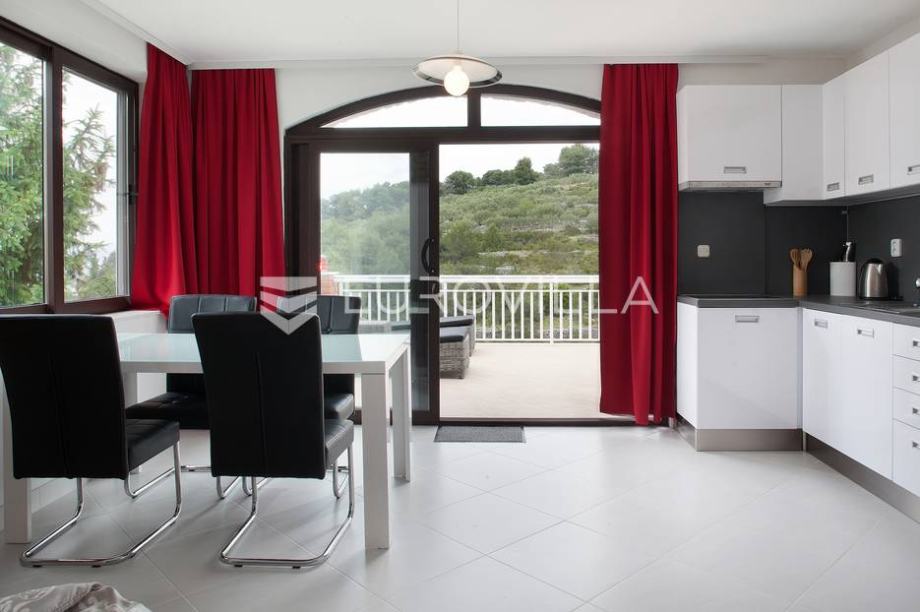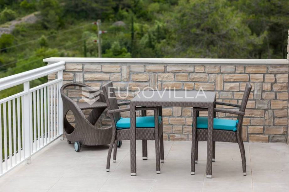 Kamena vila izgrađena u mediteranskom stilu, orijentirana prema moru, smještena na zemljištu površine 3123 m2. Sastoji se od 5 potpuno opremljenih apartmana, po dva na prvoj i drugoj etaži, te jedan na trećoj. Svaki apartman ima terasu površine 40 m2 na kojoj se nalazi roštilj. U prizemlju...