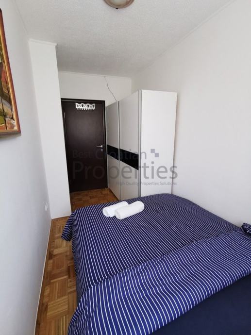 Iznajmljuje se trosoban stan (dvije sobe+dnevni boravak) u Sopotu, 45m2. Stan se nalazi na drugom katu zgrade s liftom. Sastoji se od ulaznog hodnika u kojem se nalazi kupaona s tuš kabinom i wc-om, zatim dvije manje sobe, spavaća s krevetom, te jednom koja trenutno služi kao blagavaonica,ali se može preurediti u spavaću, dječju ili radnu sobu, te boravka s kuhinjom.